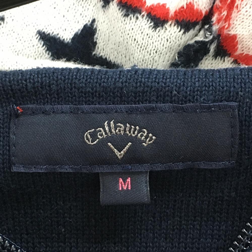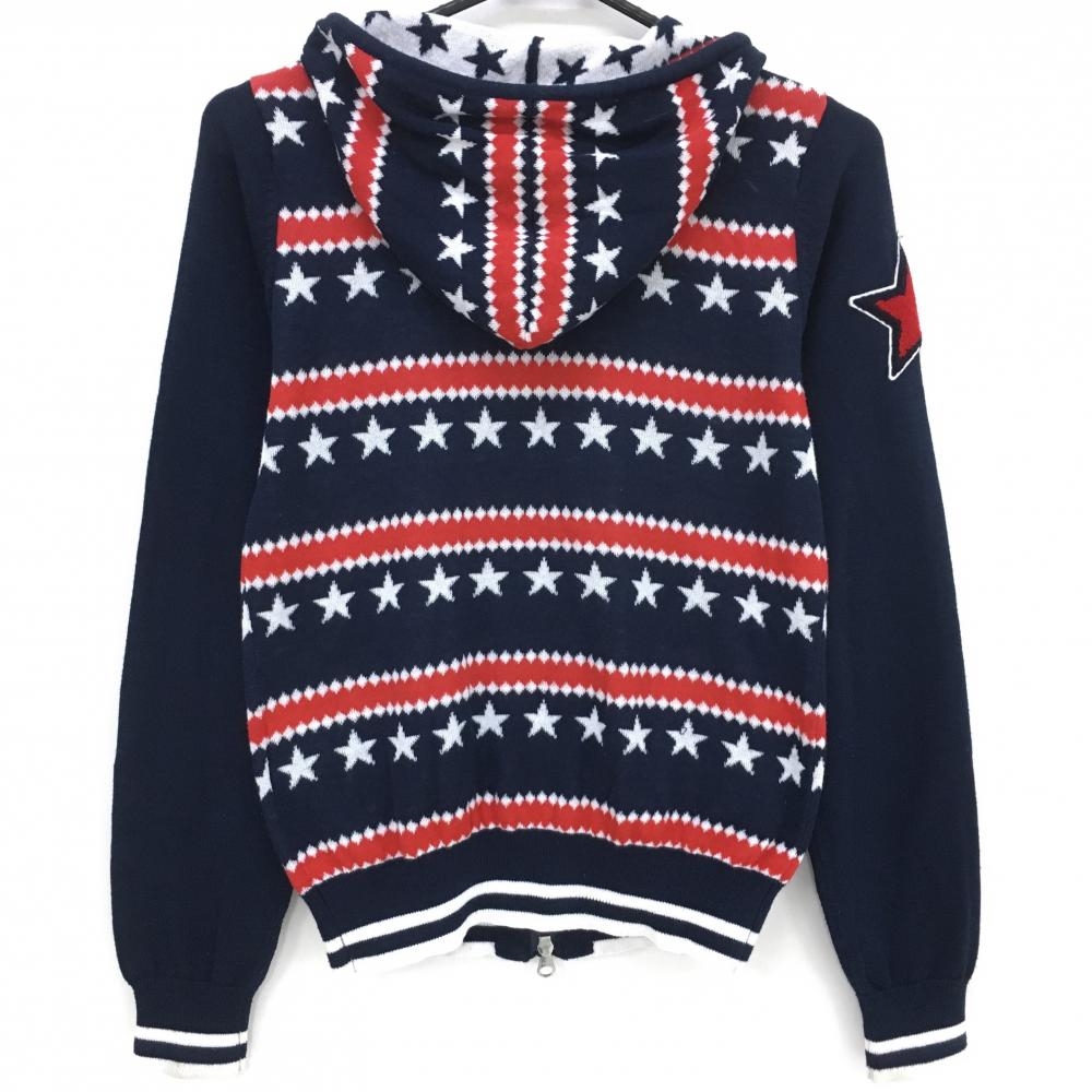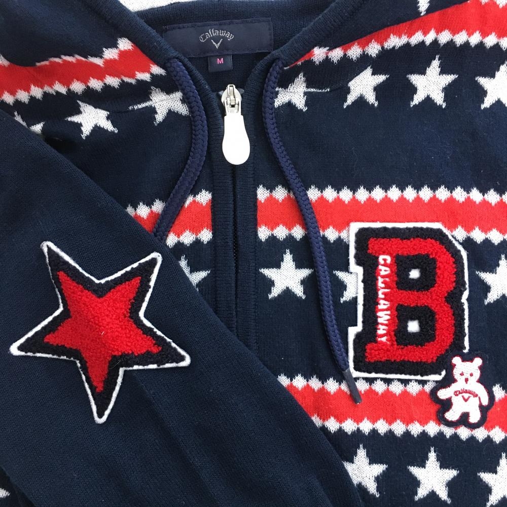 キャロウェイ ニットパーカー ネイビー×レッド 星柄 スター ジャケット パイル地ワッペン レディース M ゴルフウェア Callaway