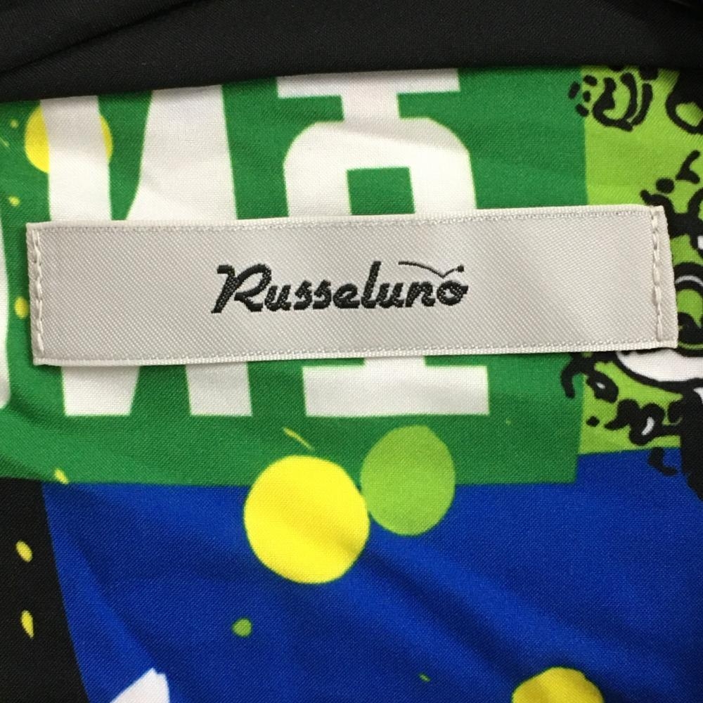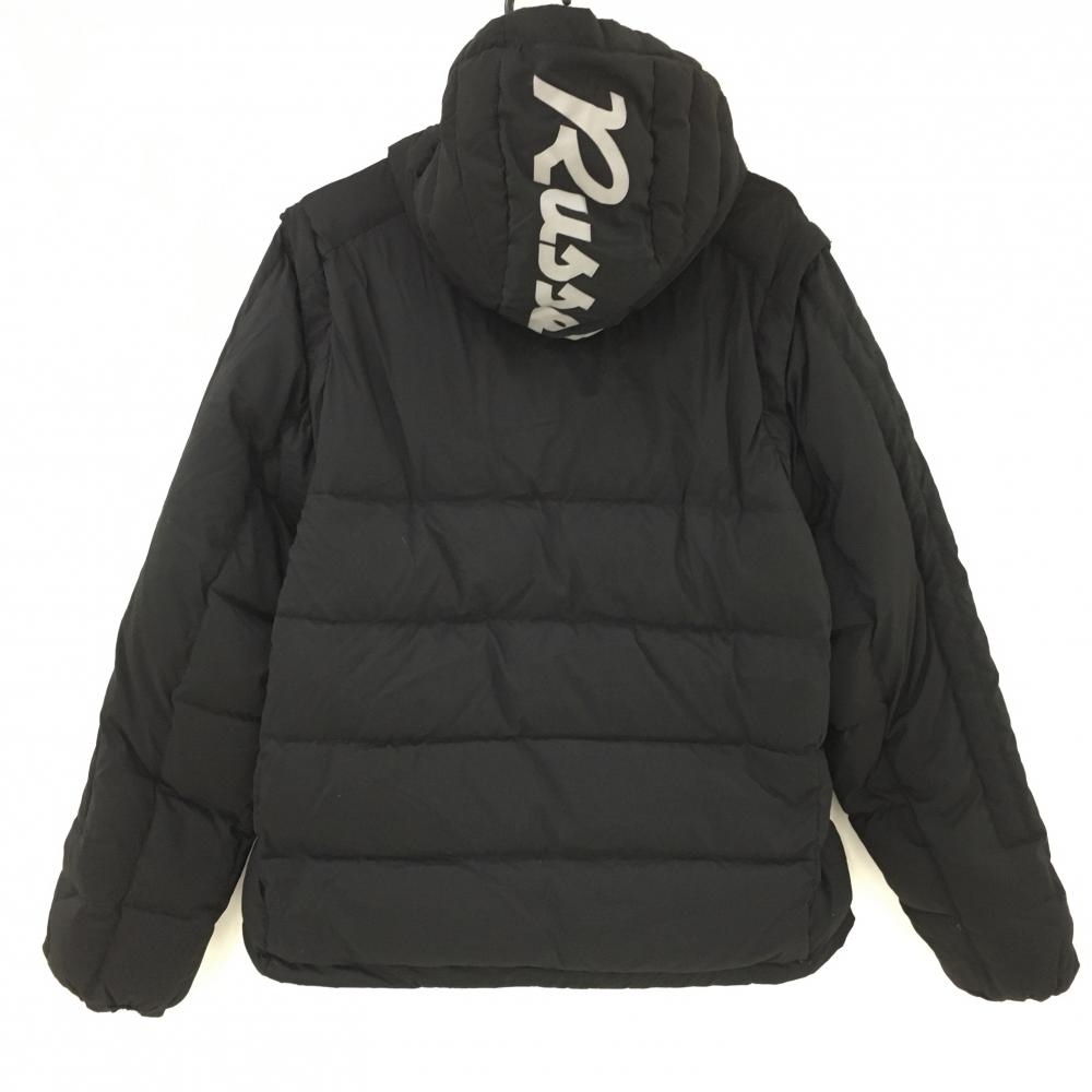 【美品】ラッセルノ 2WAYダウンジャケット 黒 フードロゴ 内側総柄 ルチャマスク 袖着脱可 メンズ 6(XL) ゴルフウェア RUSSELUNO