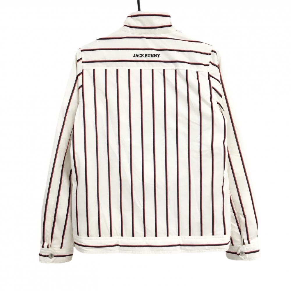 ジャックバニー 中綿ジャケット アイボリー×ネイビー ストライプ柄 ロゴワッペン レディース 2(L) ゴルフウェア Jack Bunny