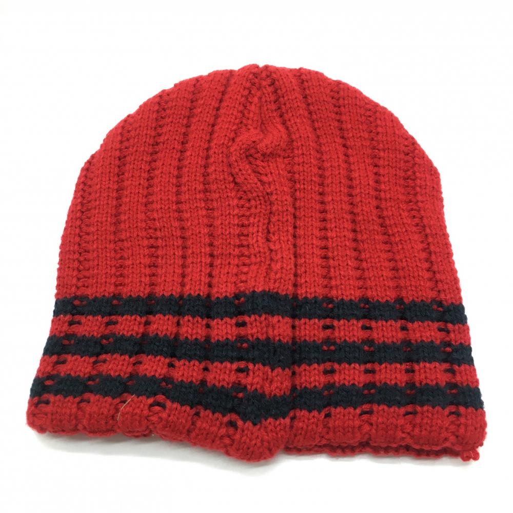 【超美品】パーセッタンタドゥエ ニット帽 レッド×ネイビー 3ライン FREE ゴルフウェア PAR72