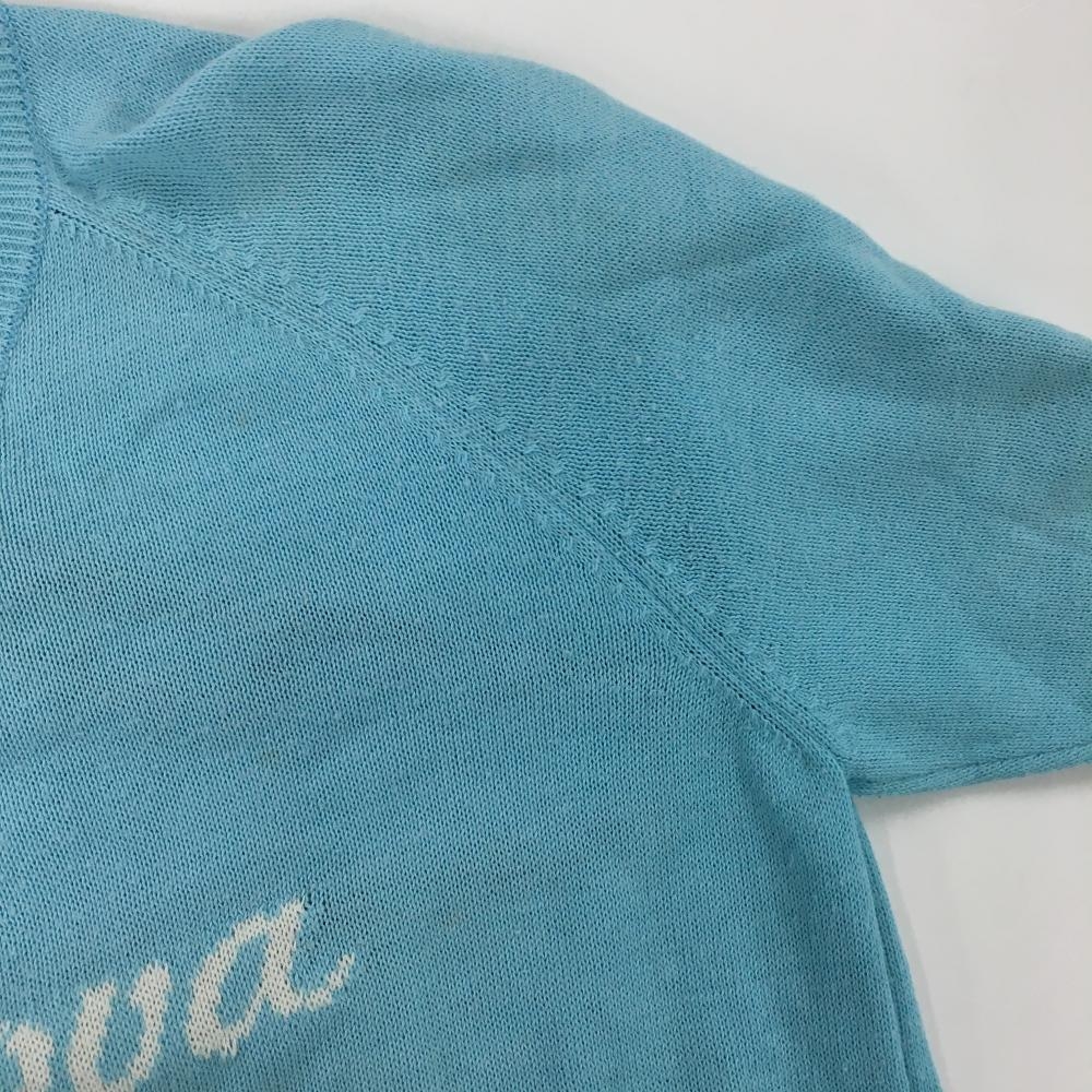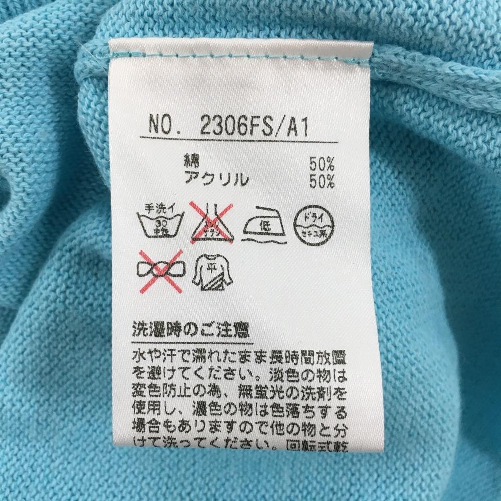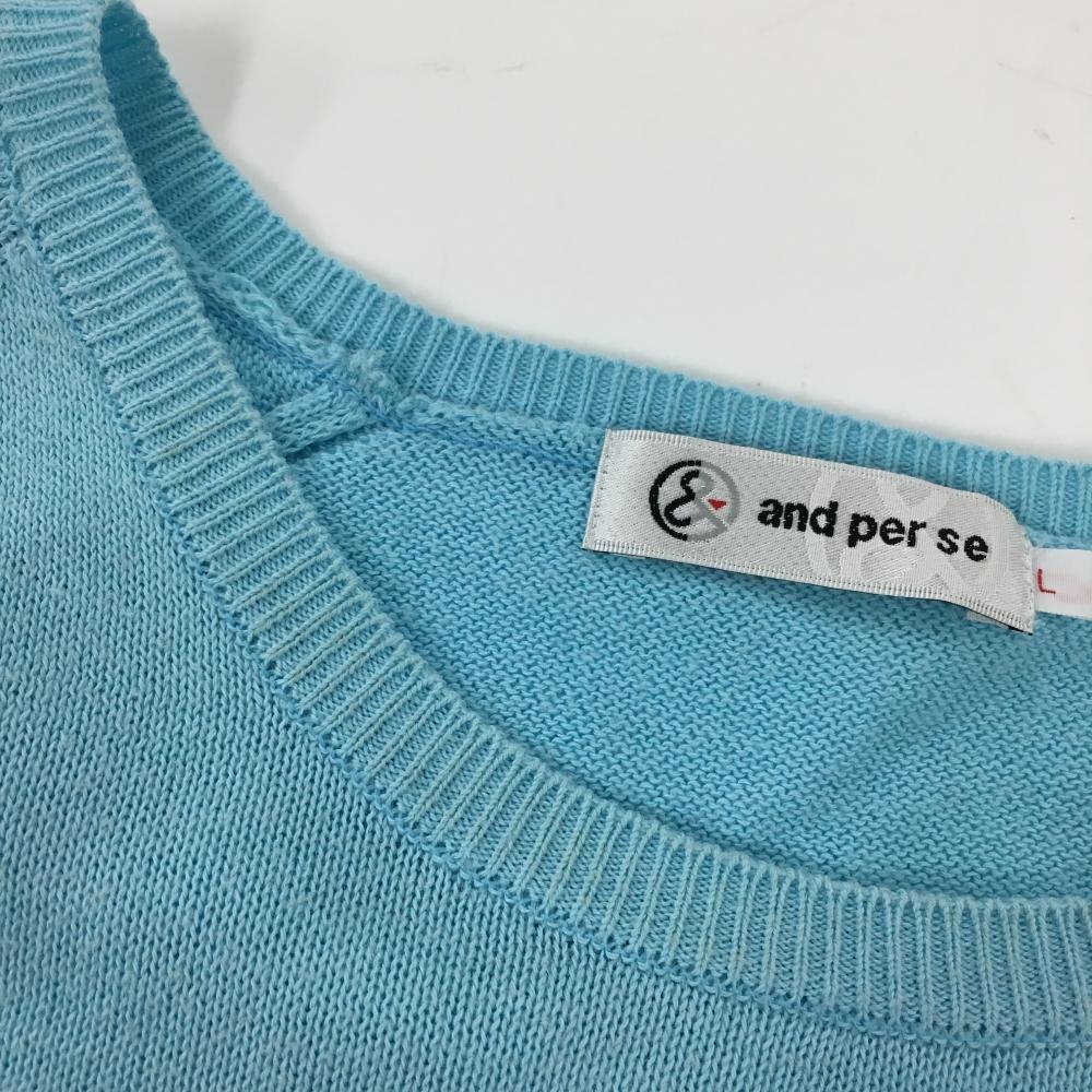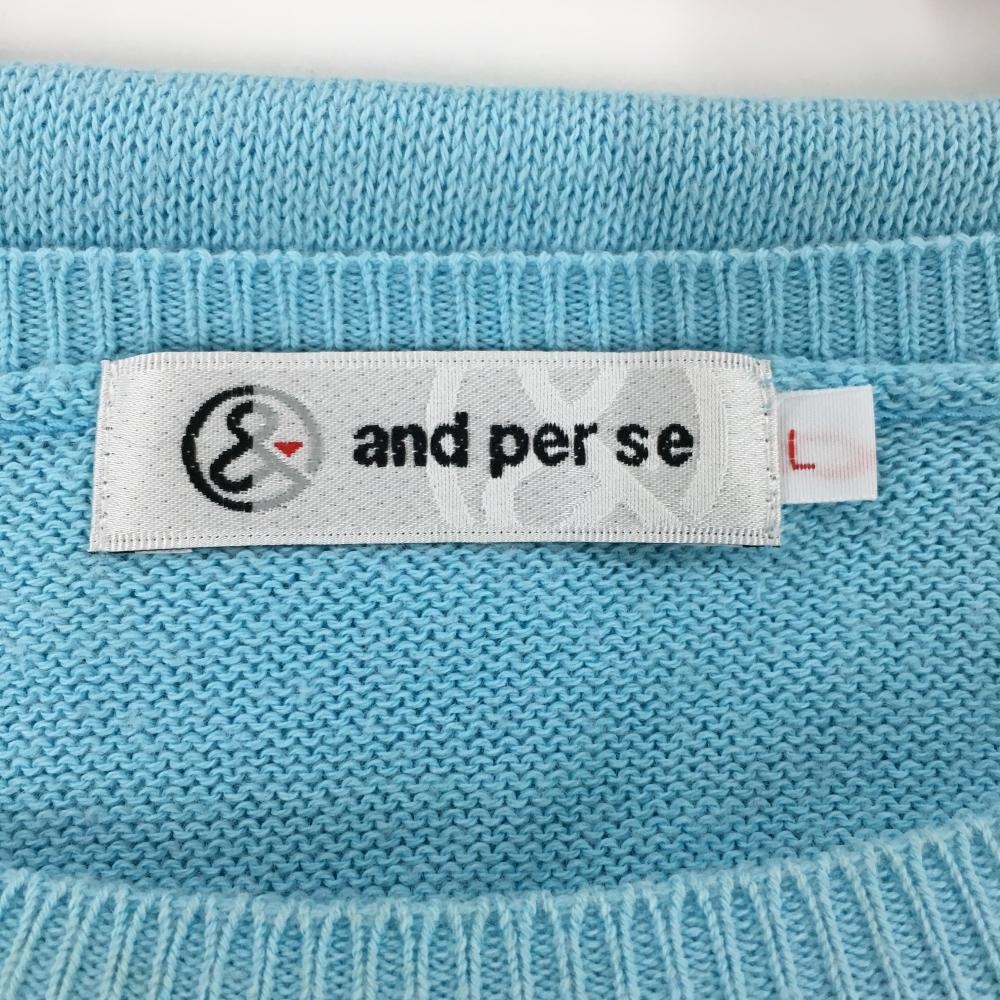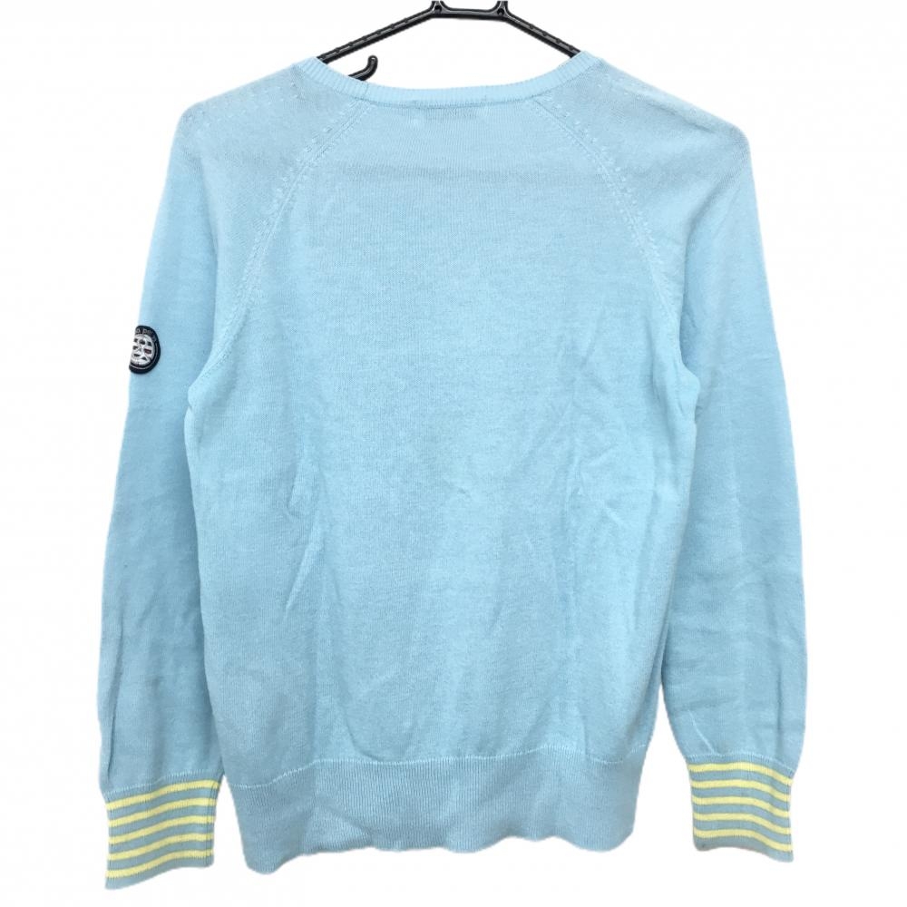 アンパスィ セーター ライトブルー×白 袖ライン ドリンク柄 コットン混 ニット レディース L ゴルフウェア and per se