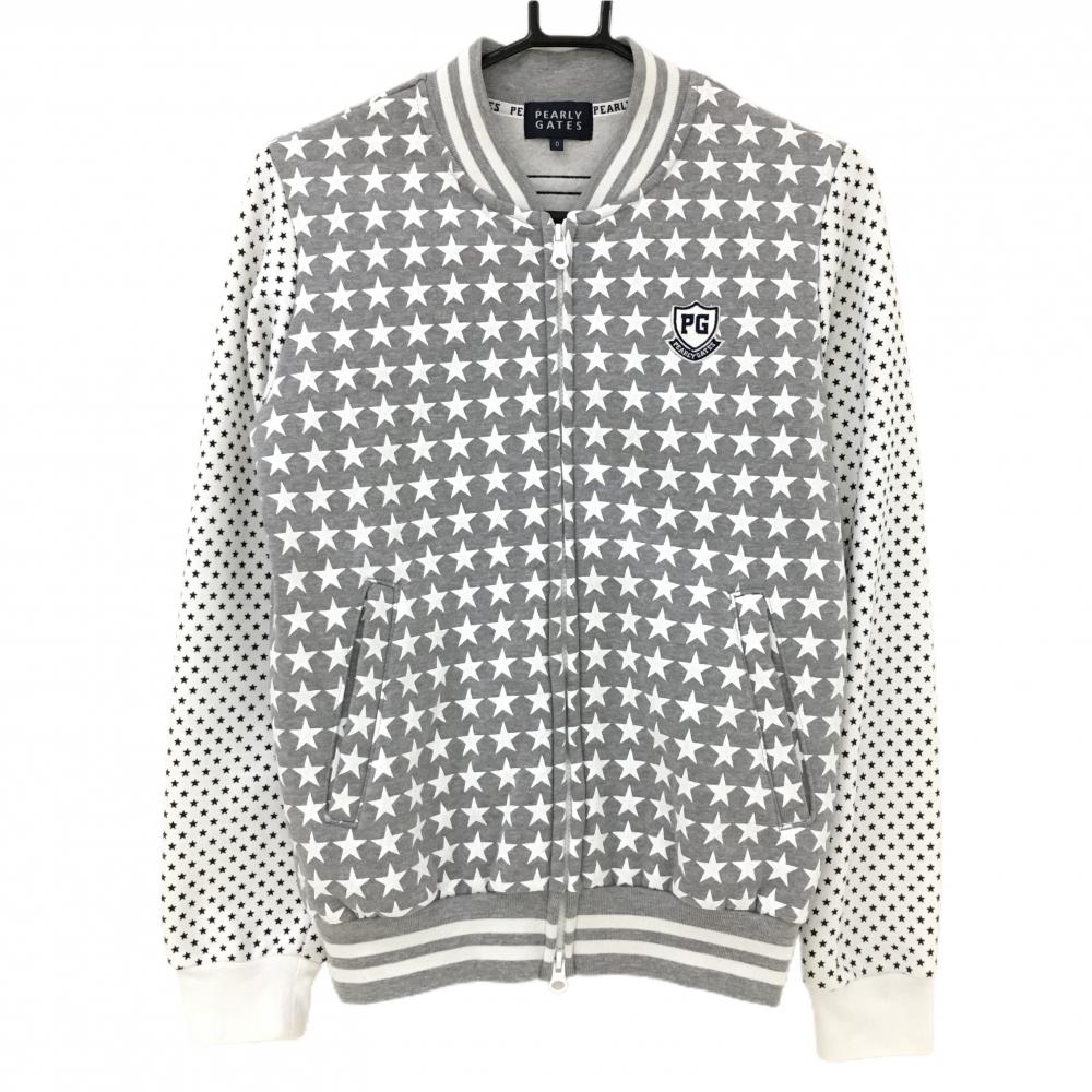 【美品】パーリーゲイツ ブルゾン グレー×白 星柄 裏起毛 レディース 0(S) ゴルフウェア PEARLY GATES