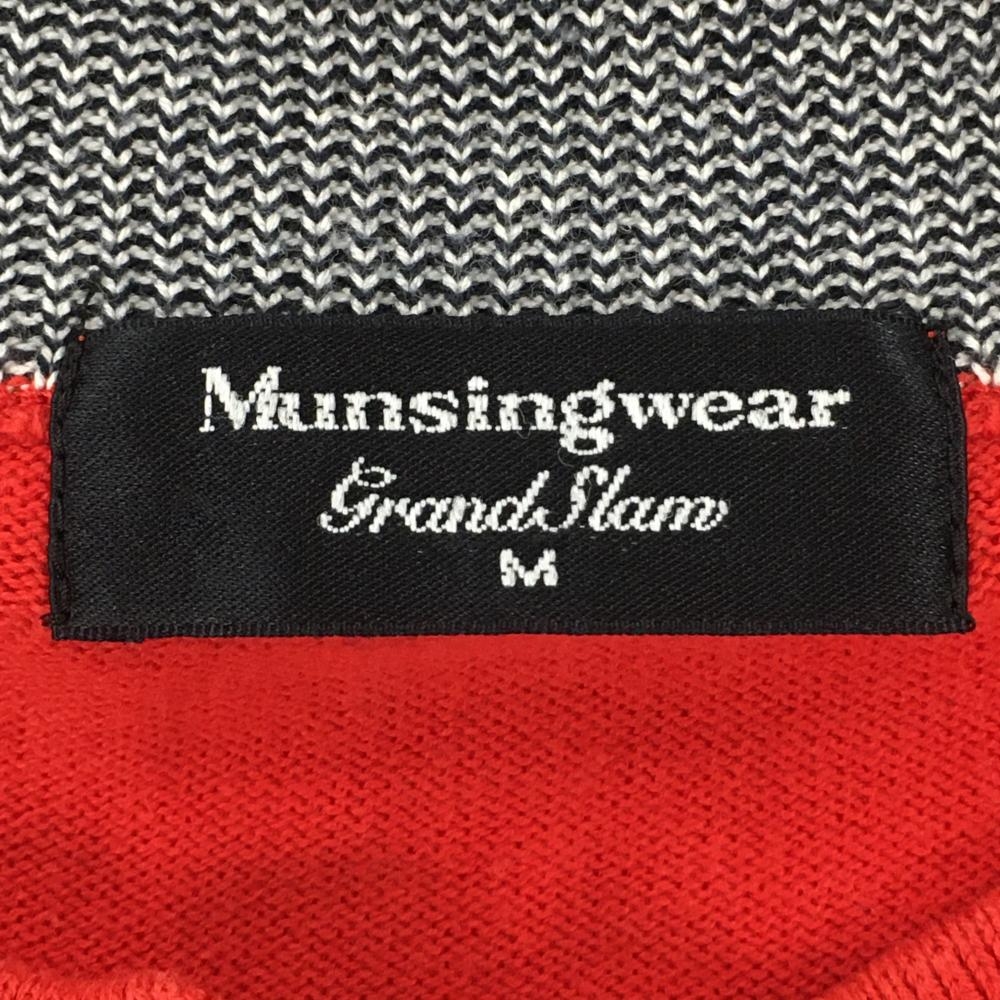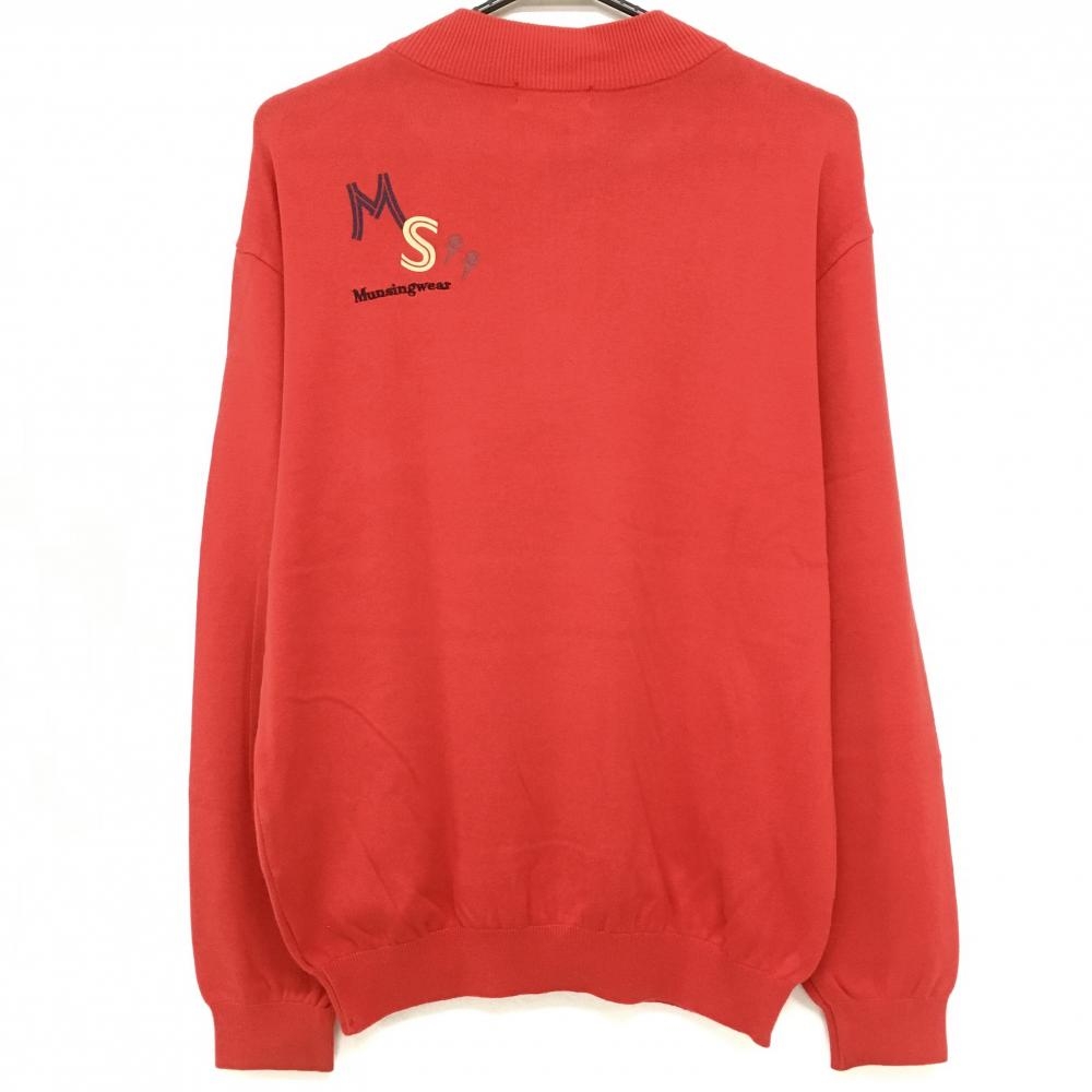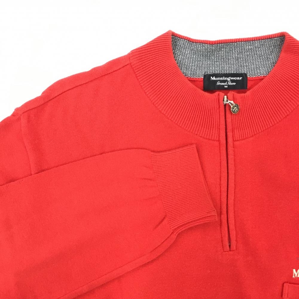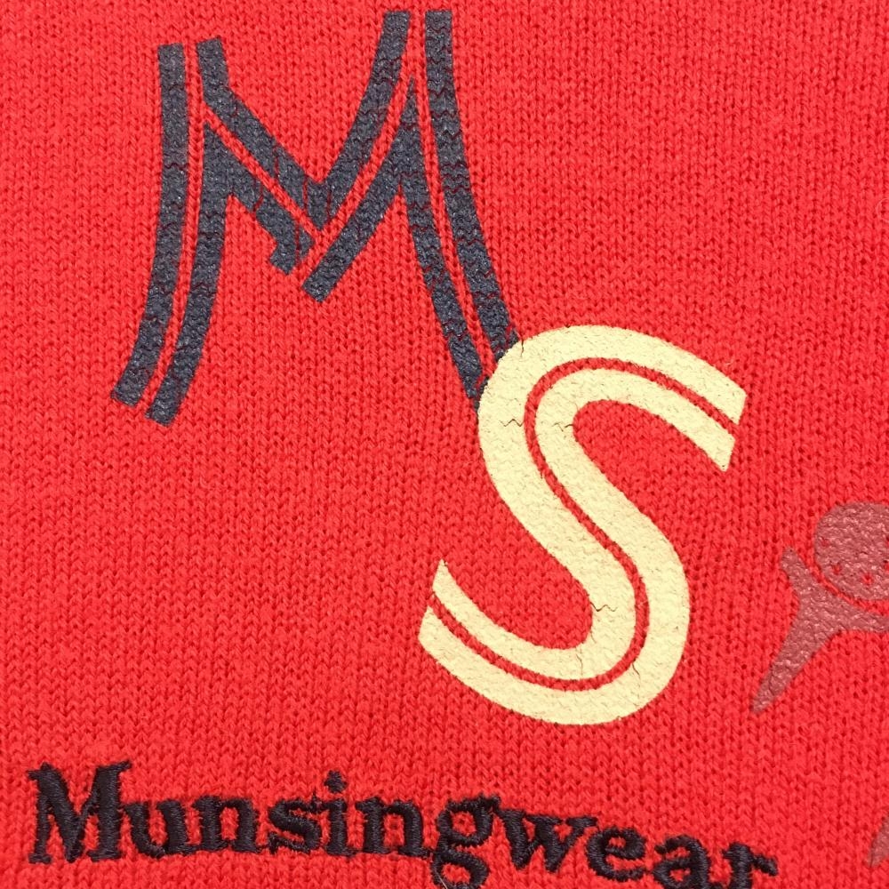マンシングウェア ハイネックセーター レッド ハーフジップ 胸プリント ニット メンズ M ゴルフウェア Munsingwear