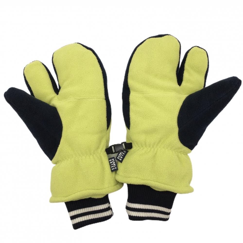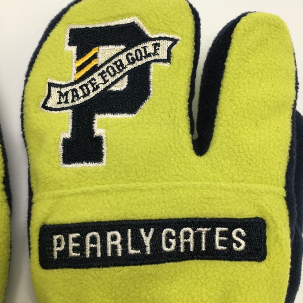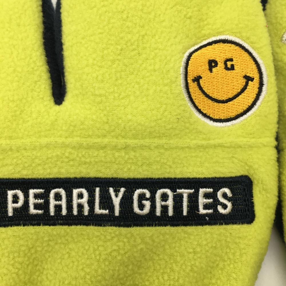 【美品】パーリーゲイツ 手袋 フリースミトングローブ ライムグリーン×ネイビー ニコちゃん 両手 レディース ゴルフウェア PEARLY GATES
