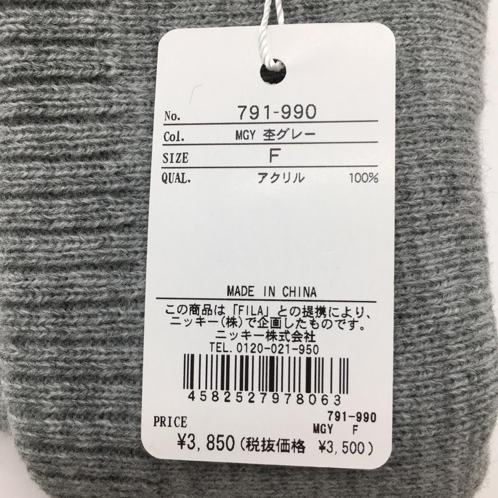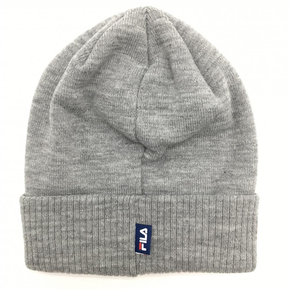 【新品】フィラゴルフ ニット帽 ライトグレー×レッド アクリル100% ロゴ刺しゅう F ゴルフウェア FILA GOLF