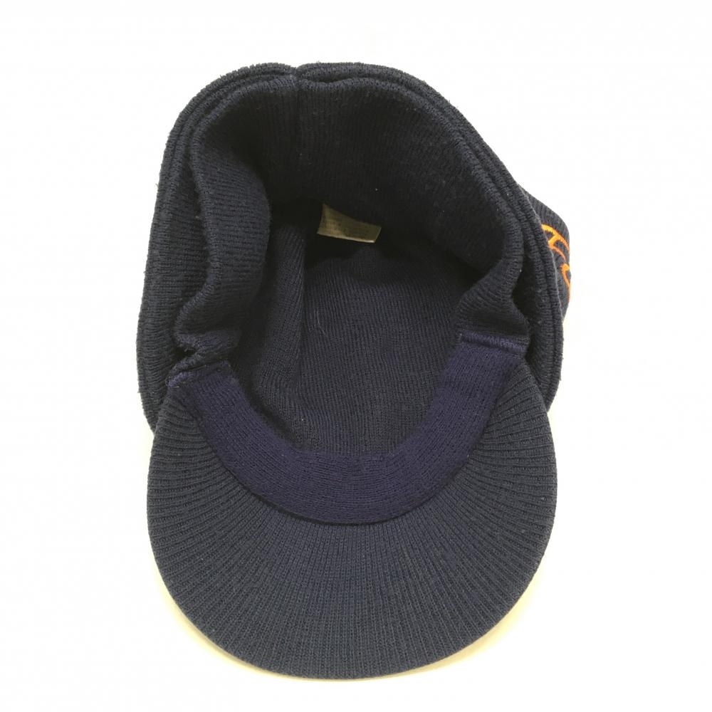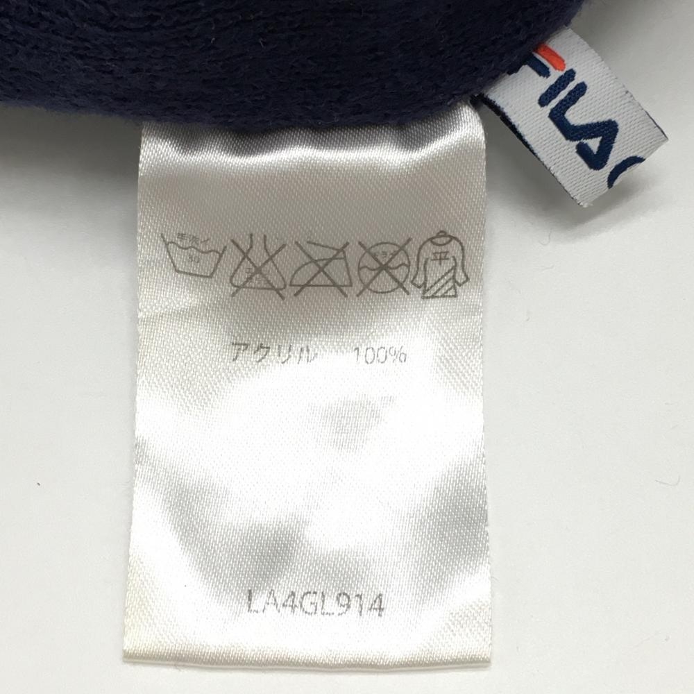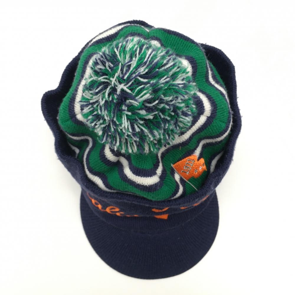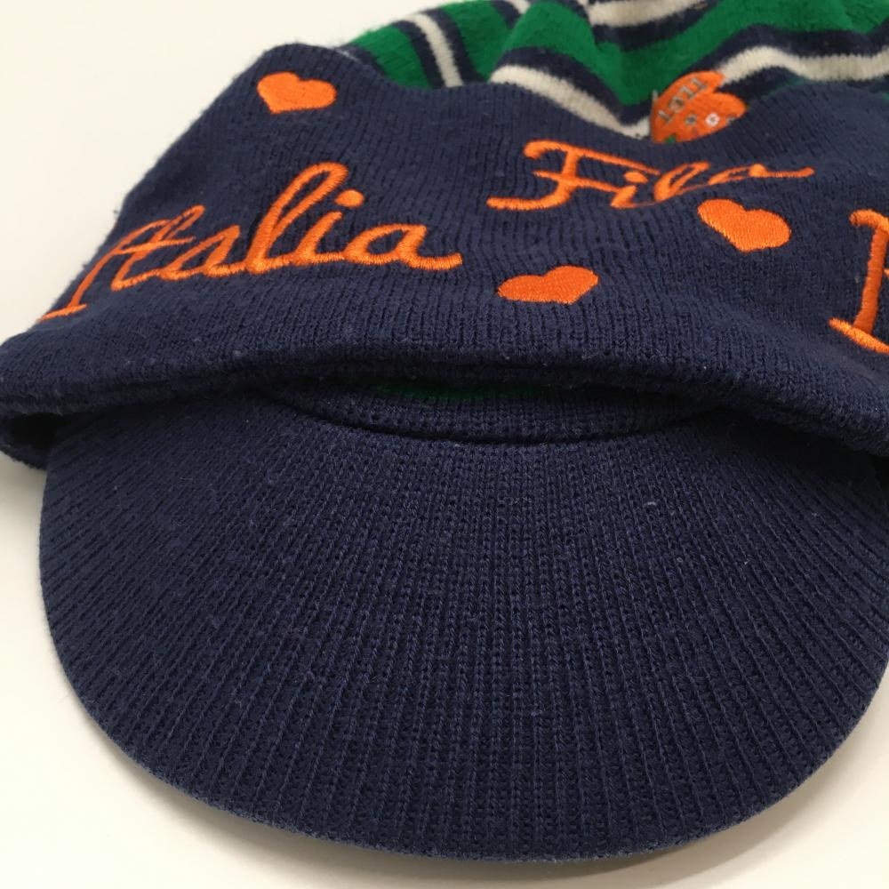 【美品】フィラゴルフ ネックウォーマー付つば付きニット帽 グリーン×ネイビー ボーダー レディース ゴルフウェア FILA GOLF