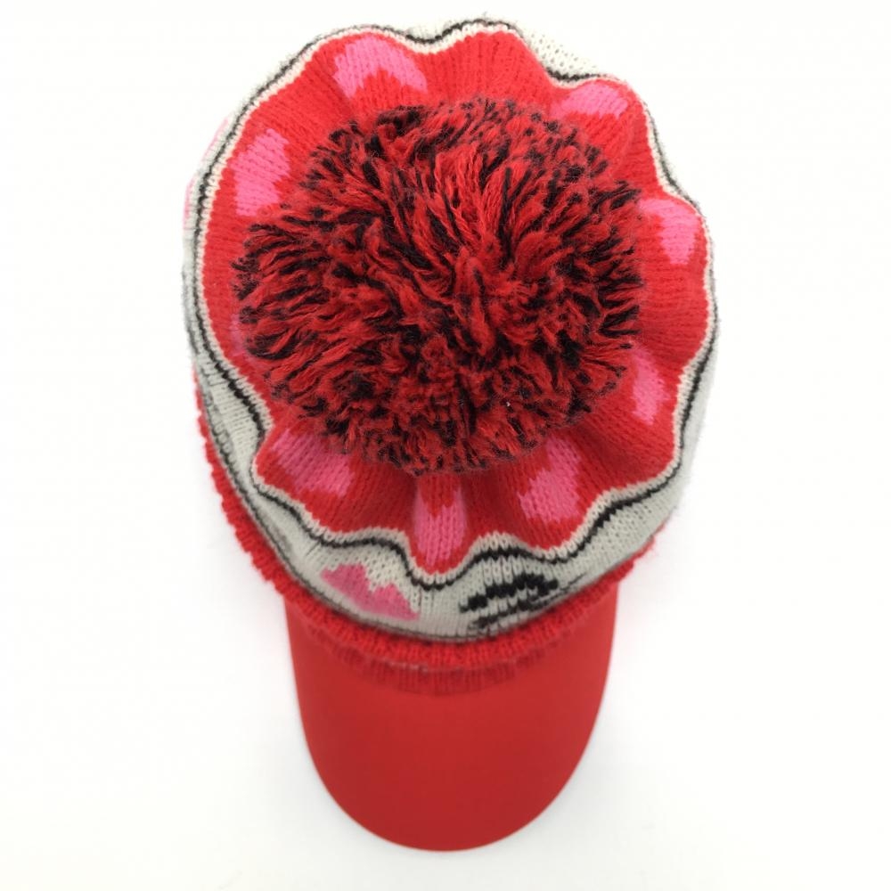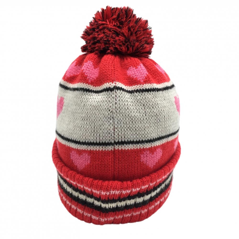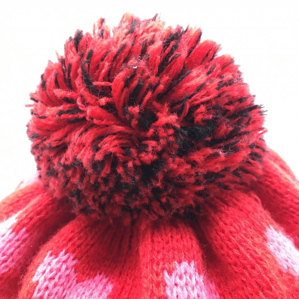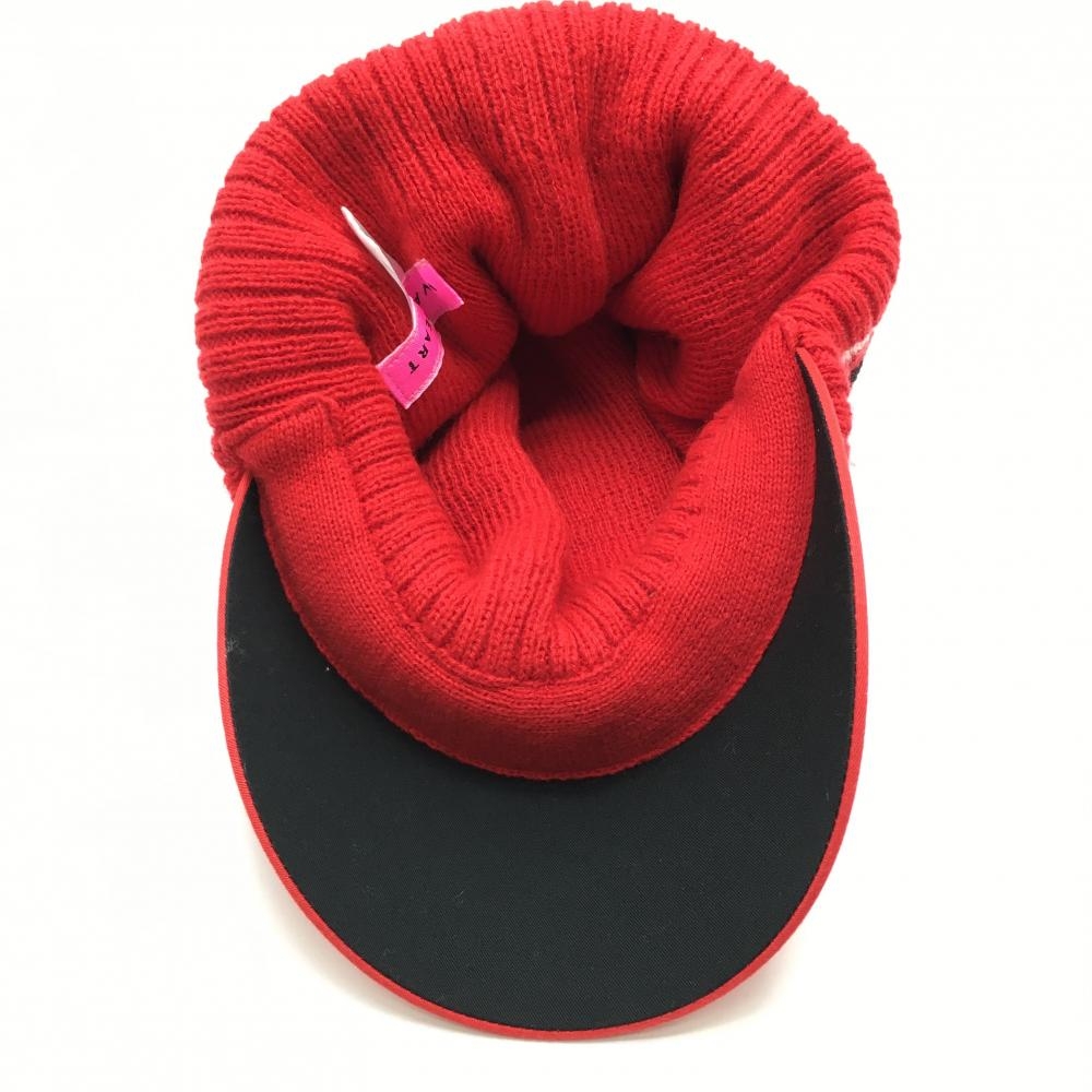 【超美品】ビバハート つば付きニット帽 レッド×白 ハート柄 ボンボン付き レディース 40 ゴルフウェア VIVA HEART