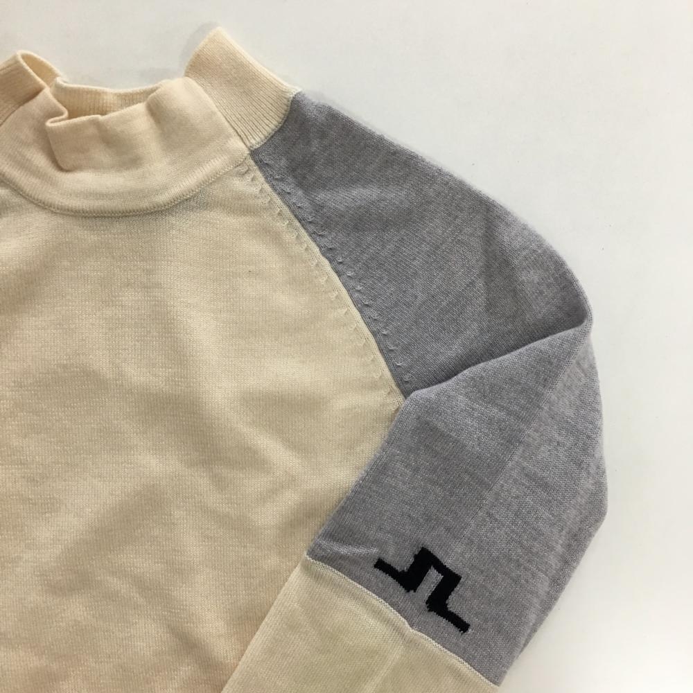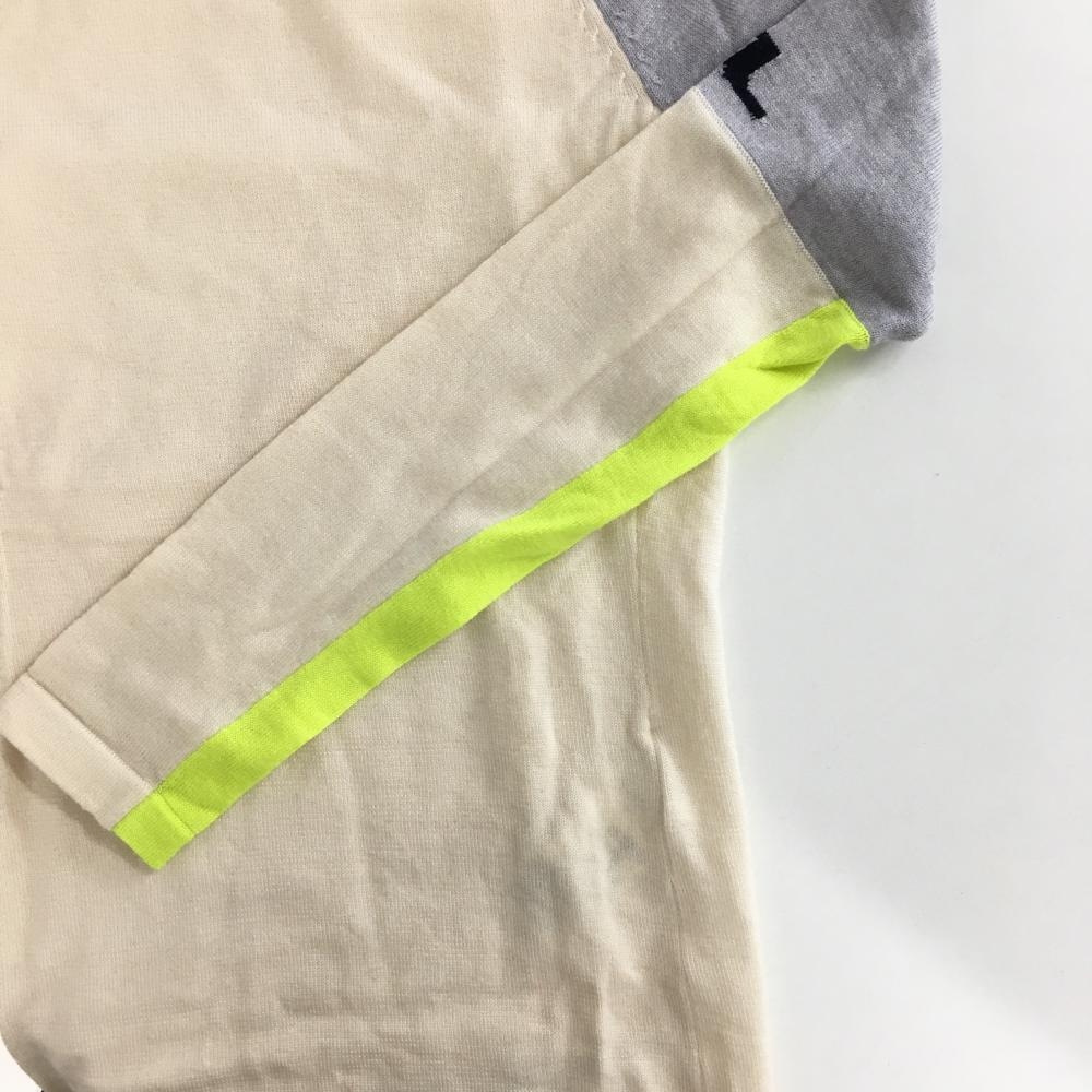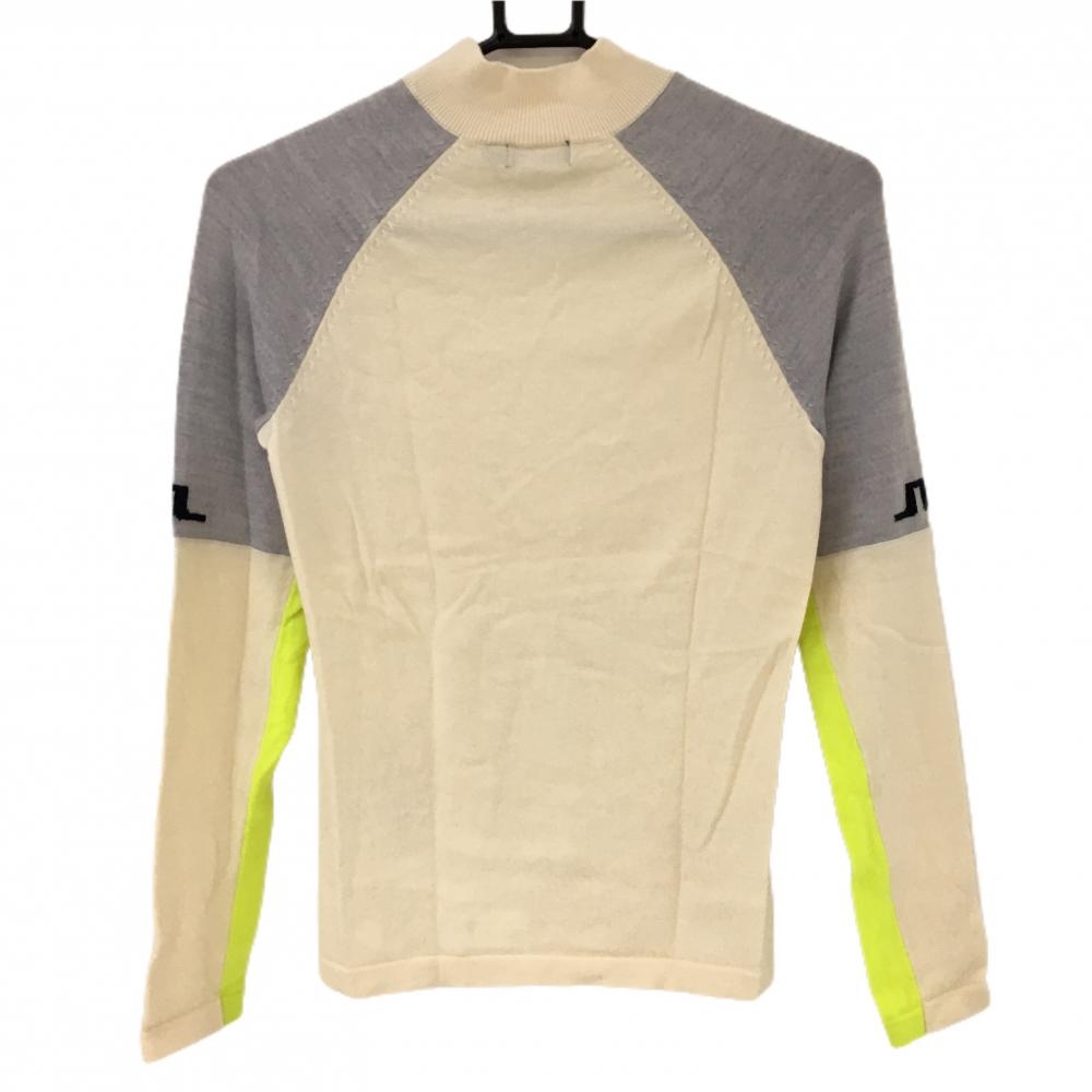 【超美品】ジェイリンドバーグ ハイネックセーター アイボリー×ライトグレー×蛍光イエロー レディース XS ゴルフウェア J.LINDEBERG