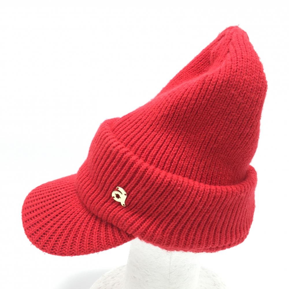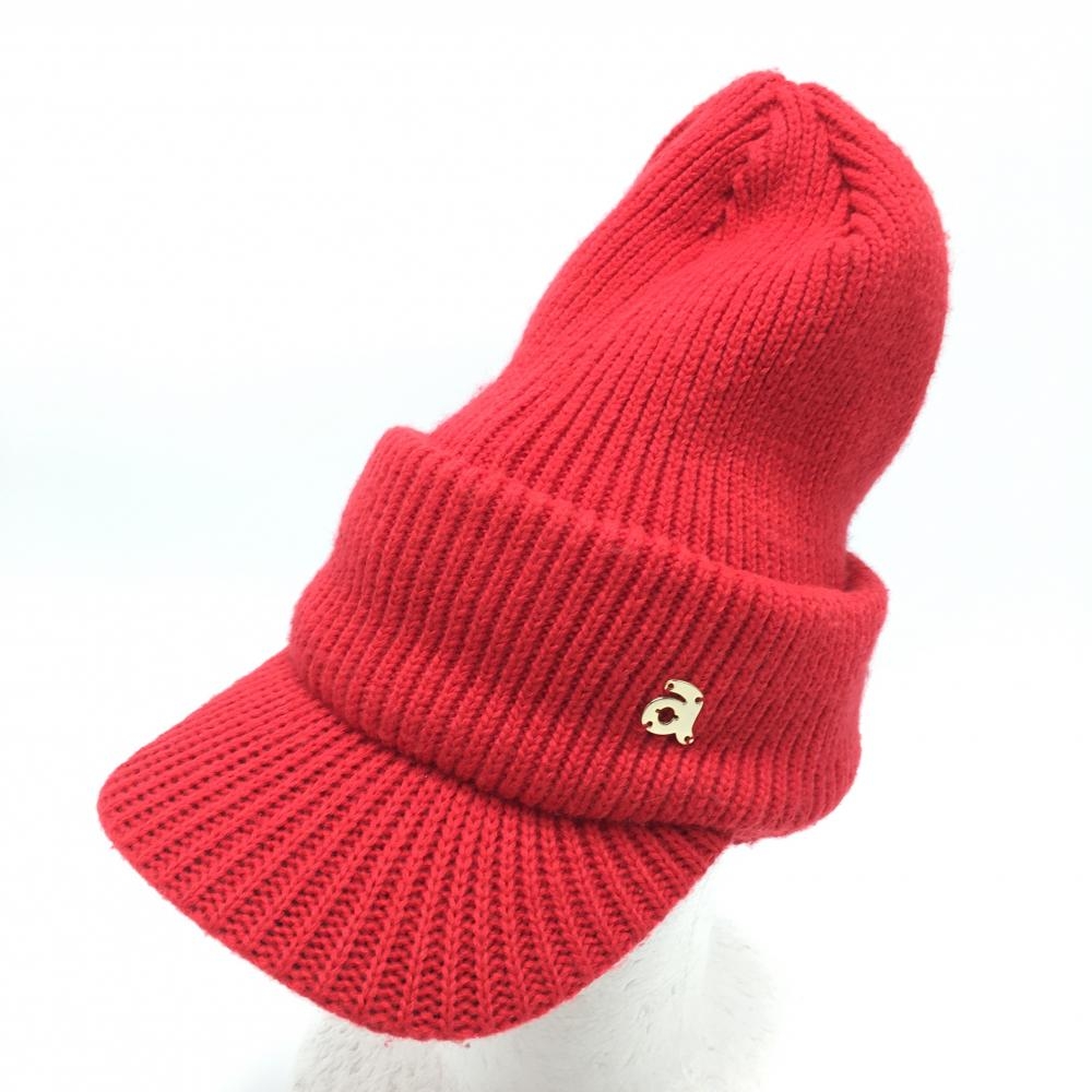 【美品】アルチビオ 2WAYニット帽 サンバイザー レッド ロゴゴールド ゴルフウェア archivio
