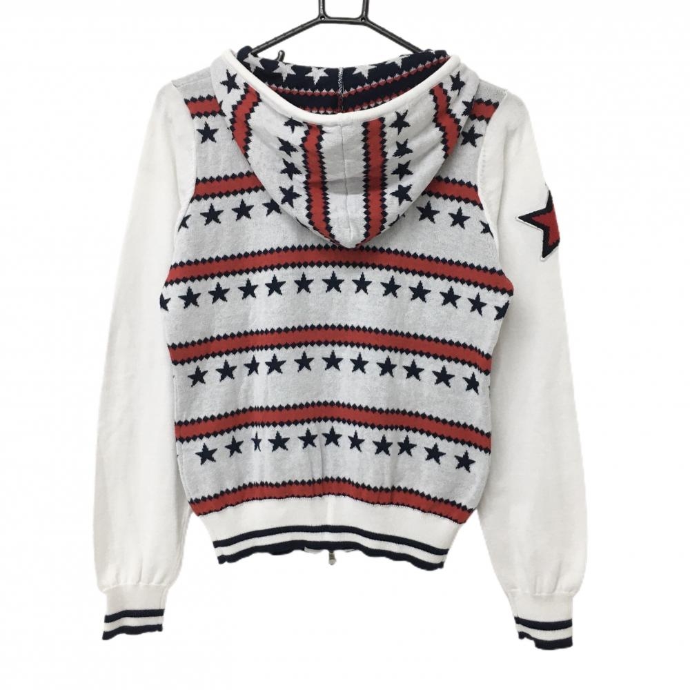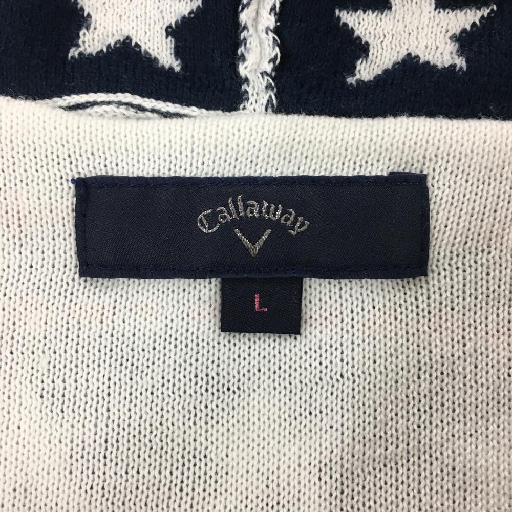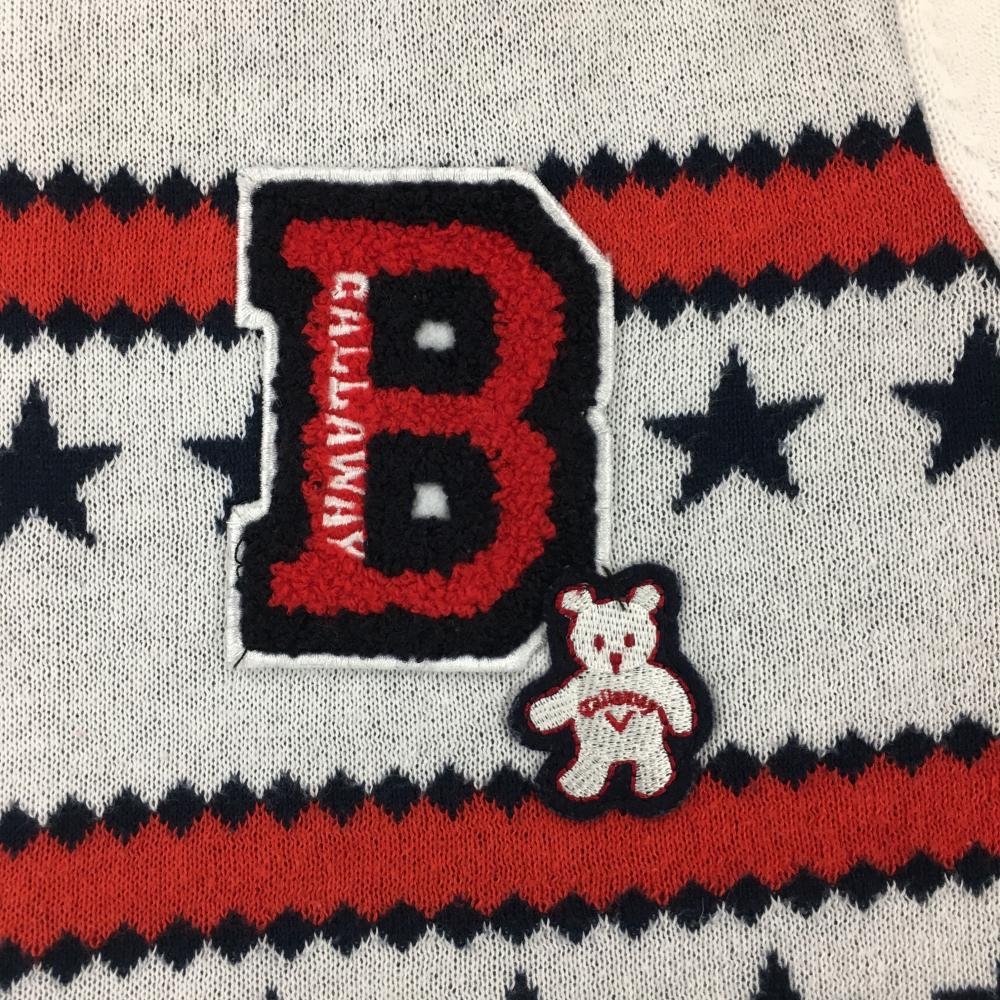 【美品】キャロウェイ ニットパーカー 白×レッド×ネイビー 総柄 星 クマ レディース L ゴルフウェア Callaway