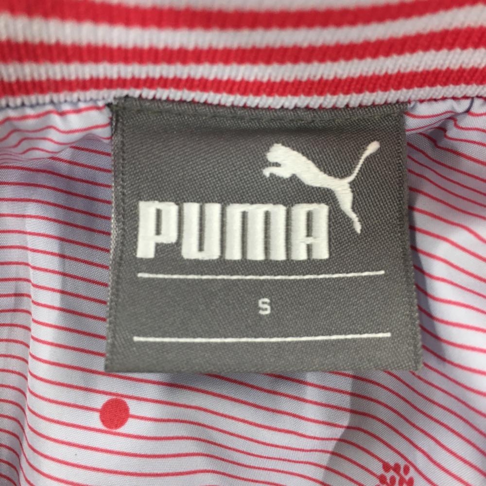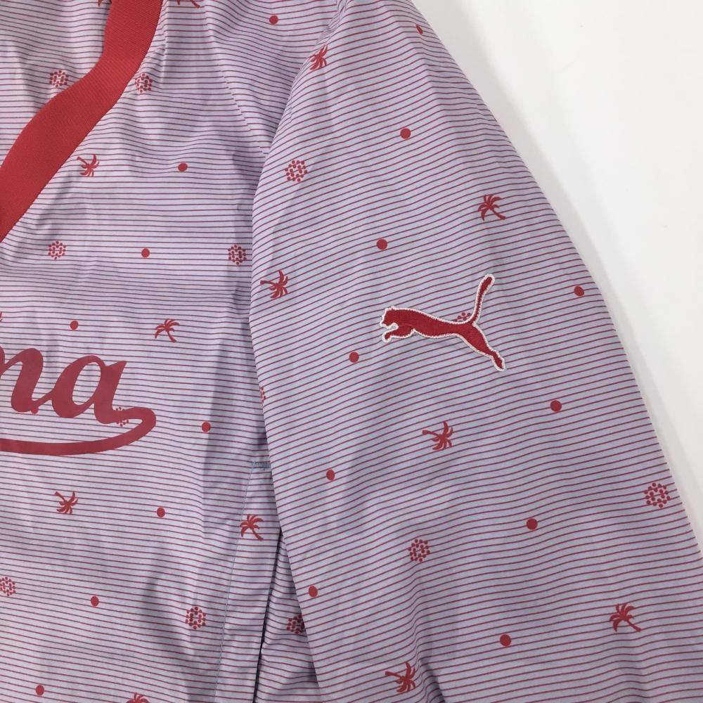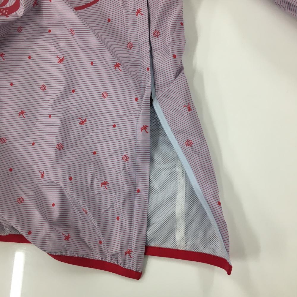 【超美品】プーマ スニード ライトパープル×ピンク 総柄 ボーダー ヤシの木 裏地メッシュ サイドジップ レディース S ゴルフウェア PUMA