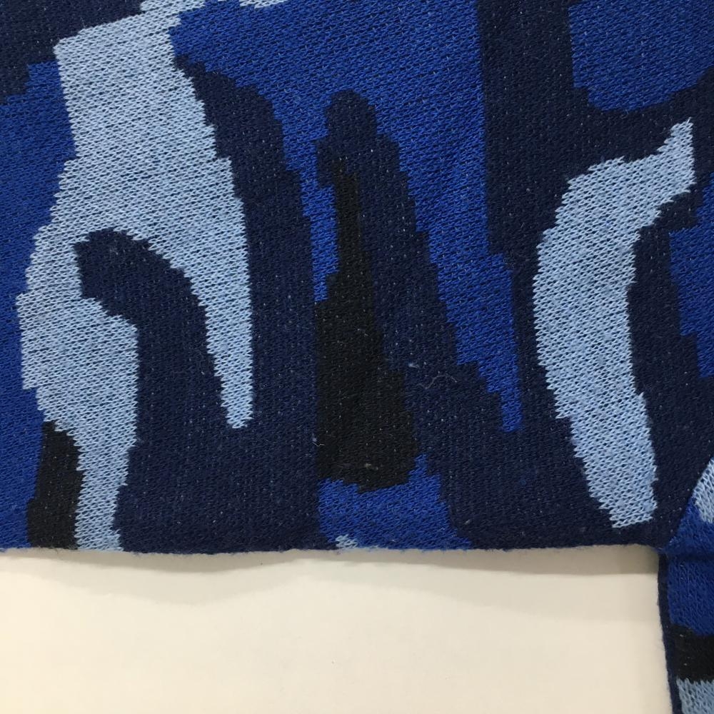 ジュンアンドロペ セーター ブルー×ネイビー カモフラ 迷彩 ロゴプリント ウール混 レディース L ゴルフウェア JUN&ROPE