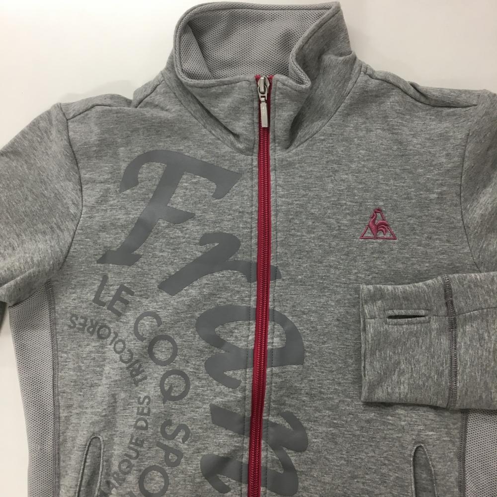 ルコック ジャケットブルゾン 杢グレー×ピンク フロントプリント サイドメッシュ生地 レディース M ゴルフウェア le coq sportif