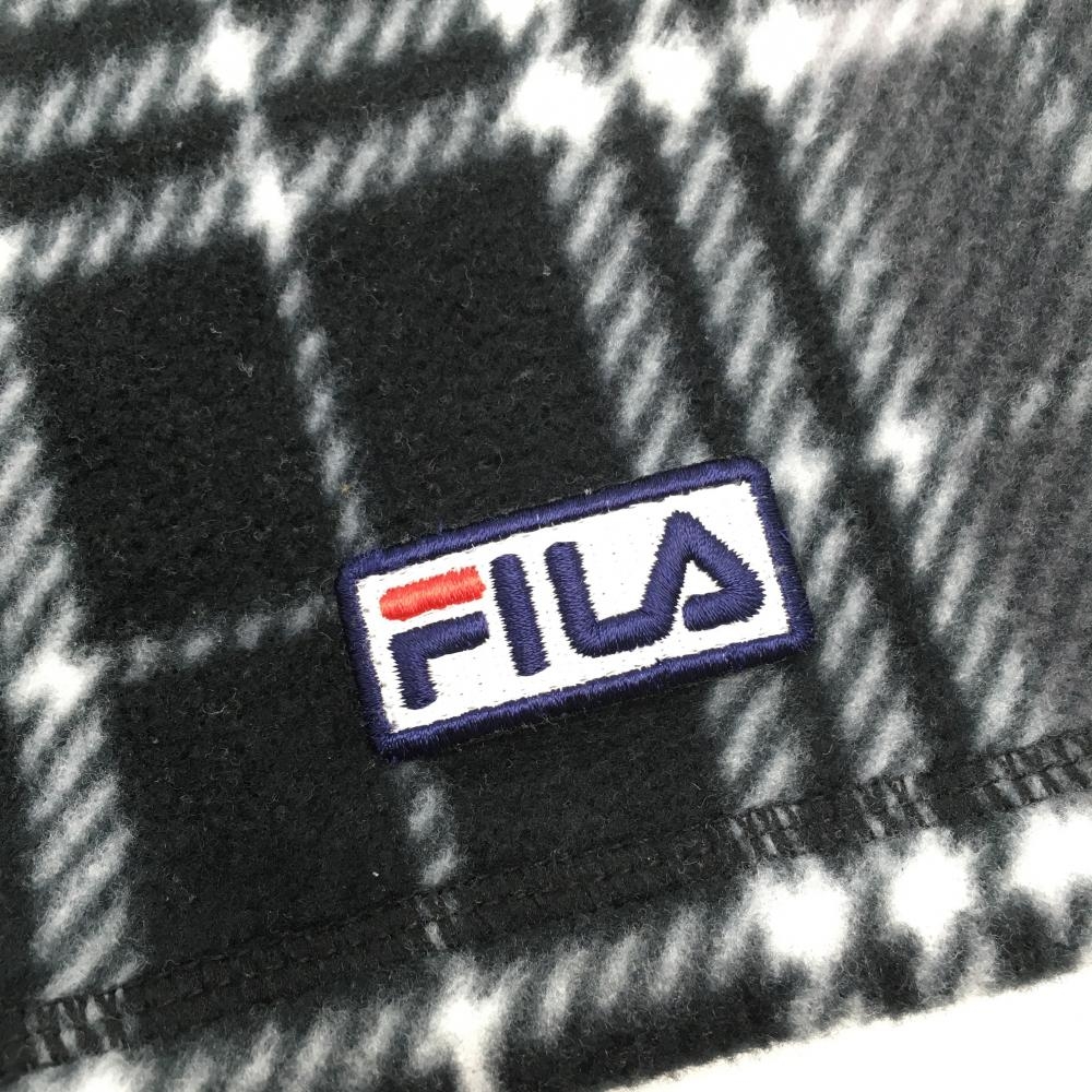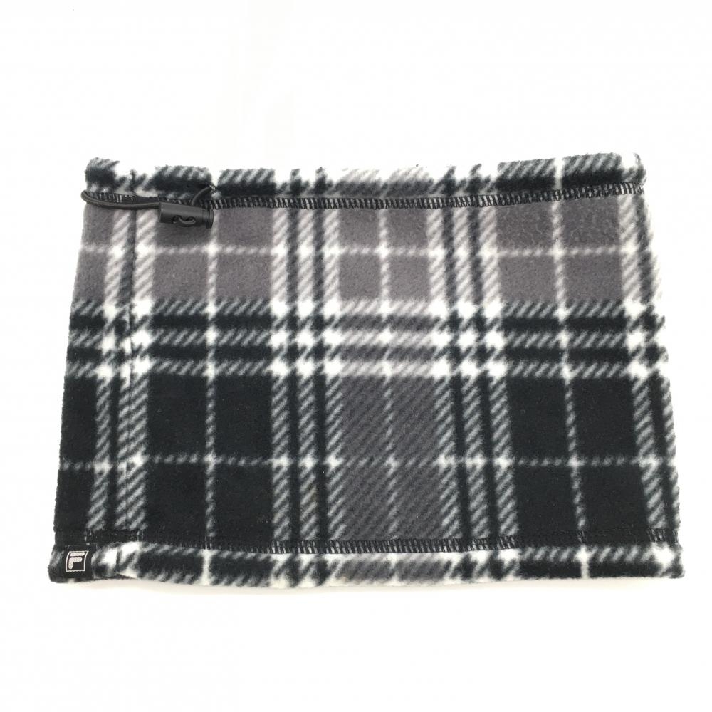 【超美品】フィラゴルフ ネックウォーマー 黒×白 チェック フリース ドローコード ゴルフウェア FILA GOLF