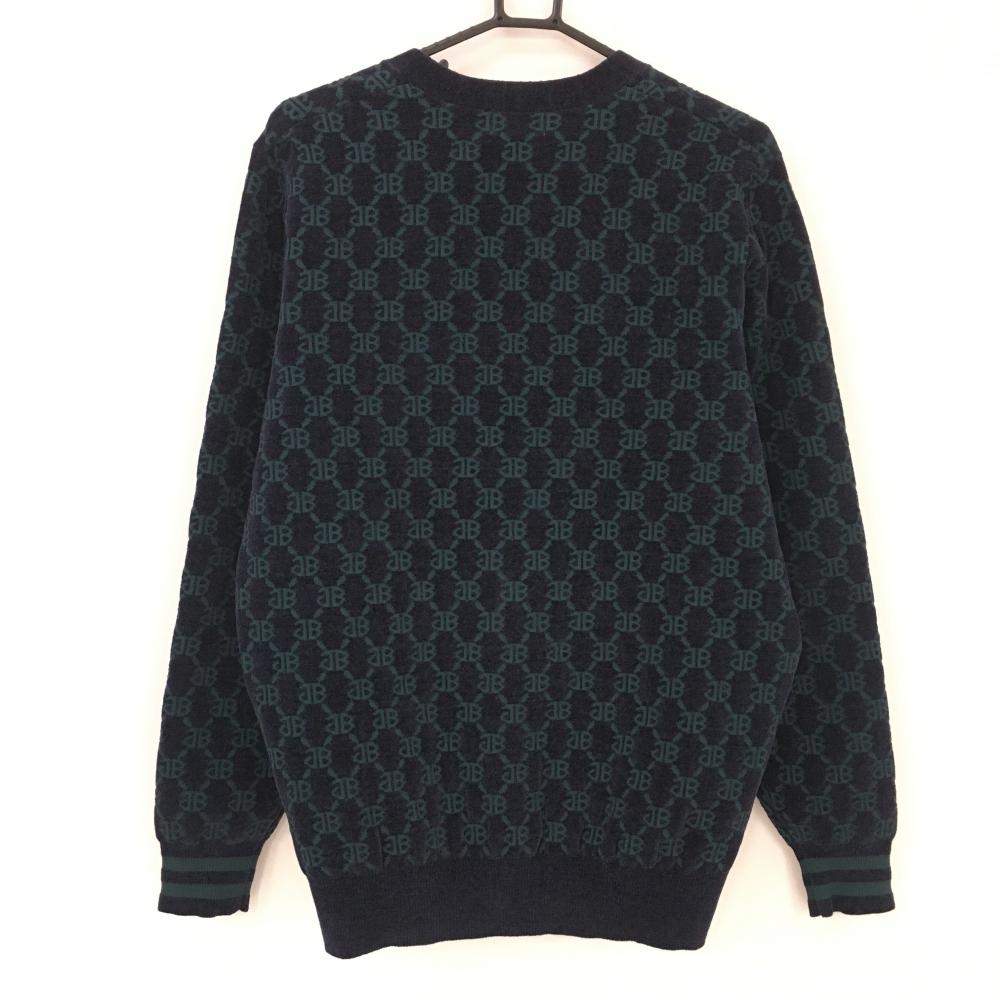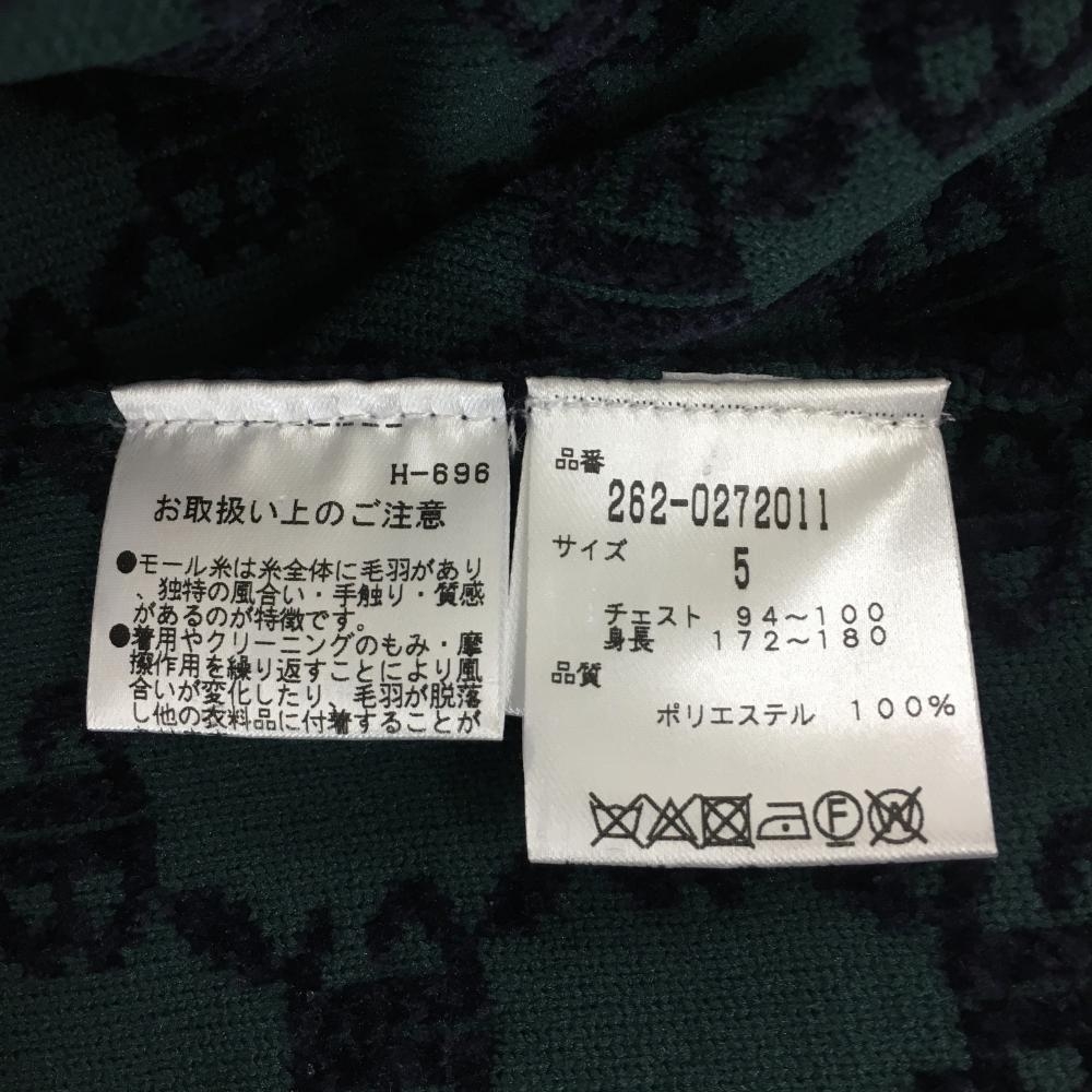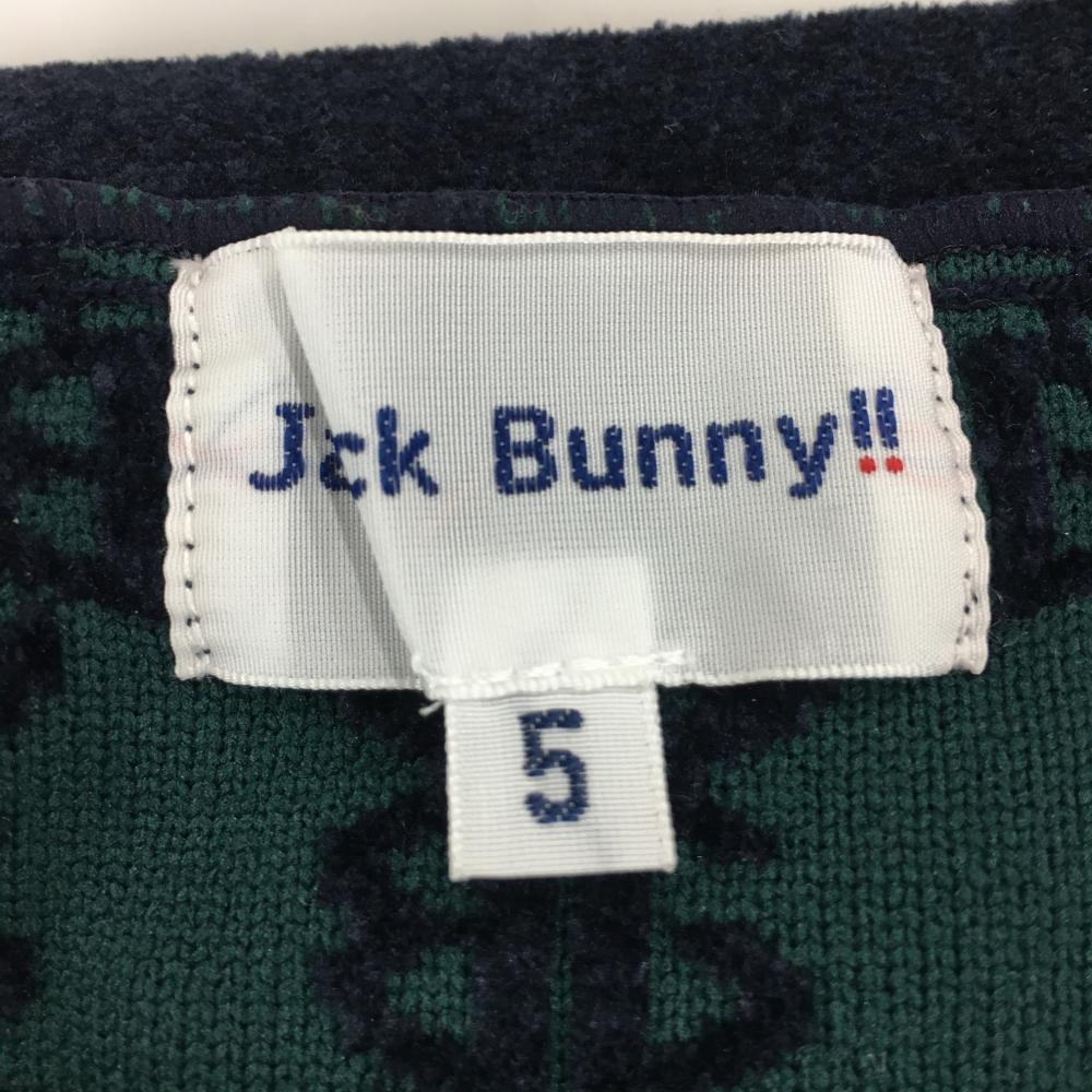 【超美品】ジャックバニー ニットカーディガン ネイビー×グリーン ロゴ総柄 ジャケット メンズ 5(L) ゴルフウェア Jack Bunny