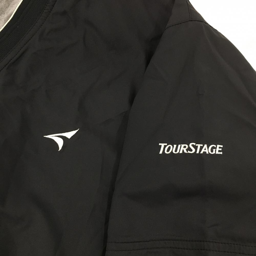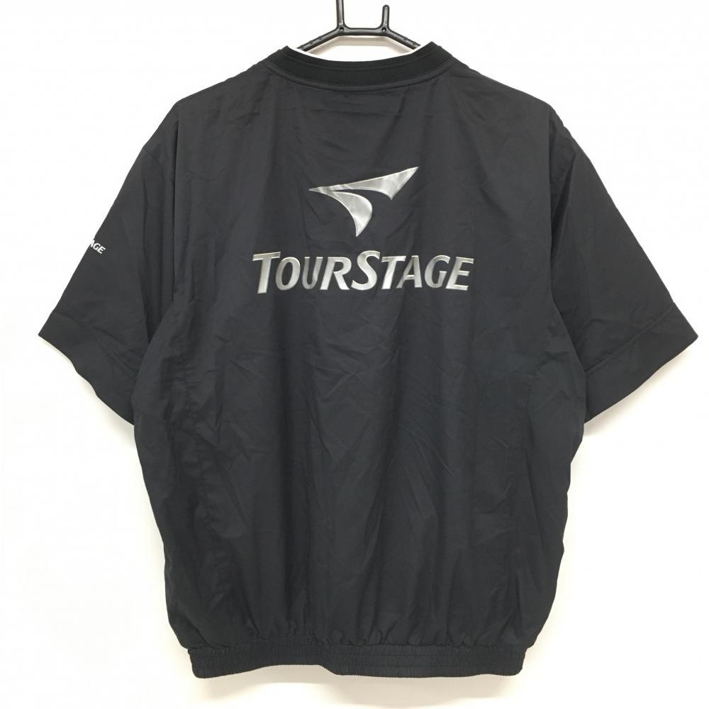 ツアーステージ 半袖スニード 黒×白 バックプリント Vネック 裏地付き メンズ M ゴルフウェア TOURSTAGE