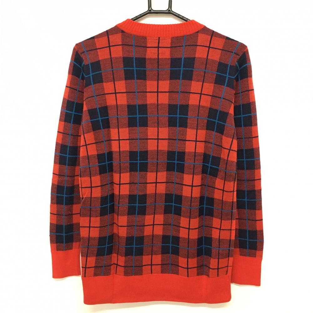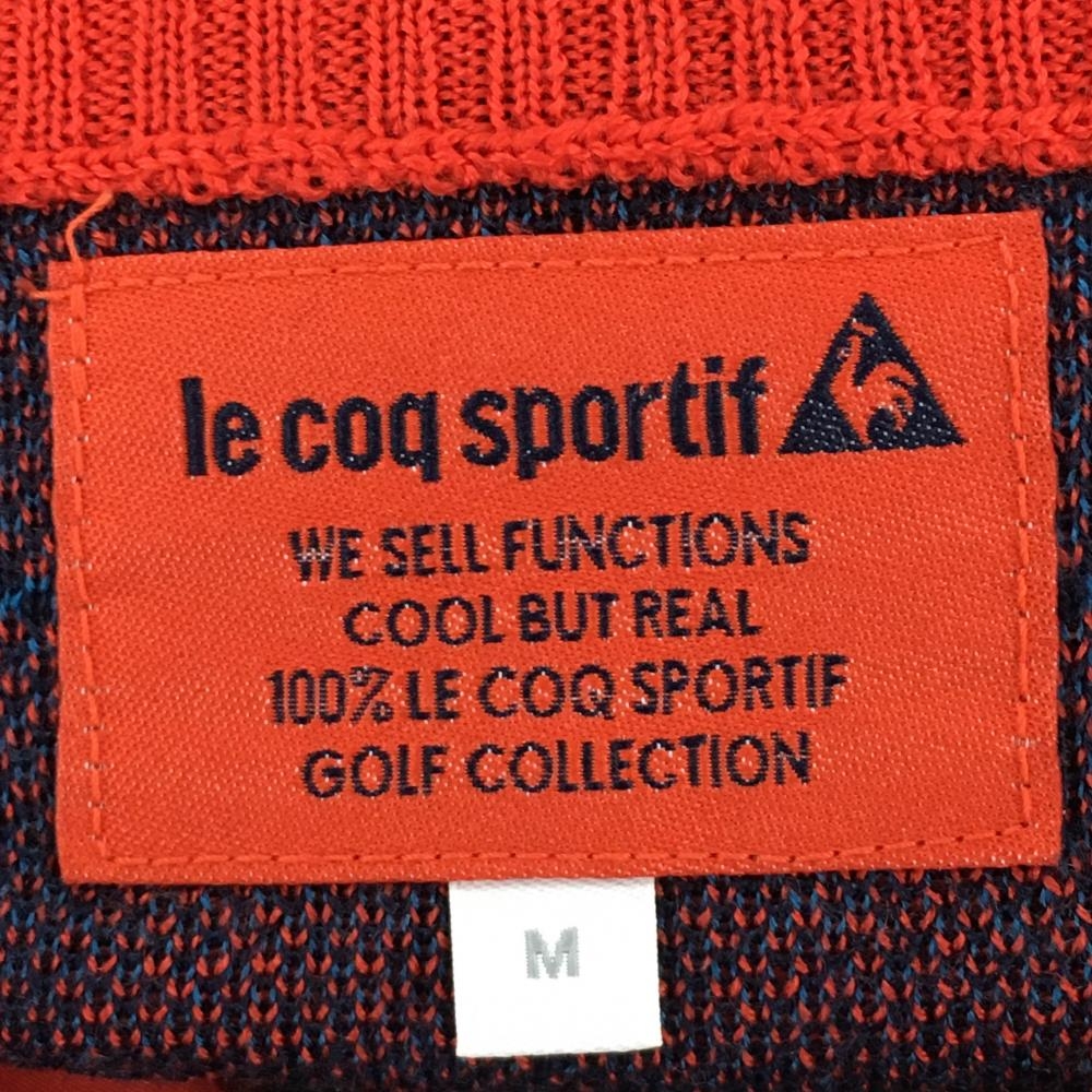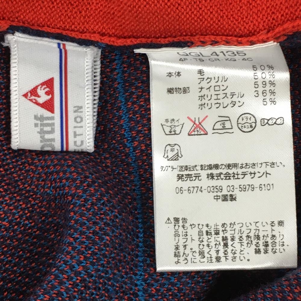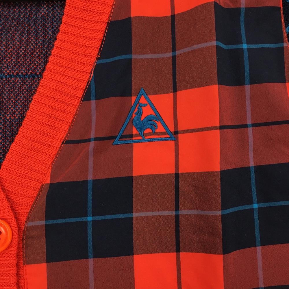 【美品】ルコック ニット切替カーディガン レッド×ネイビー チェック柄 ウール混 メンズ M ゴルフウェア le coq sportif