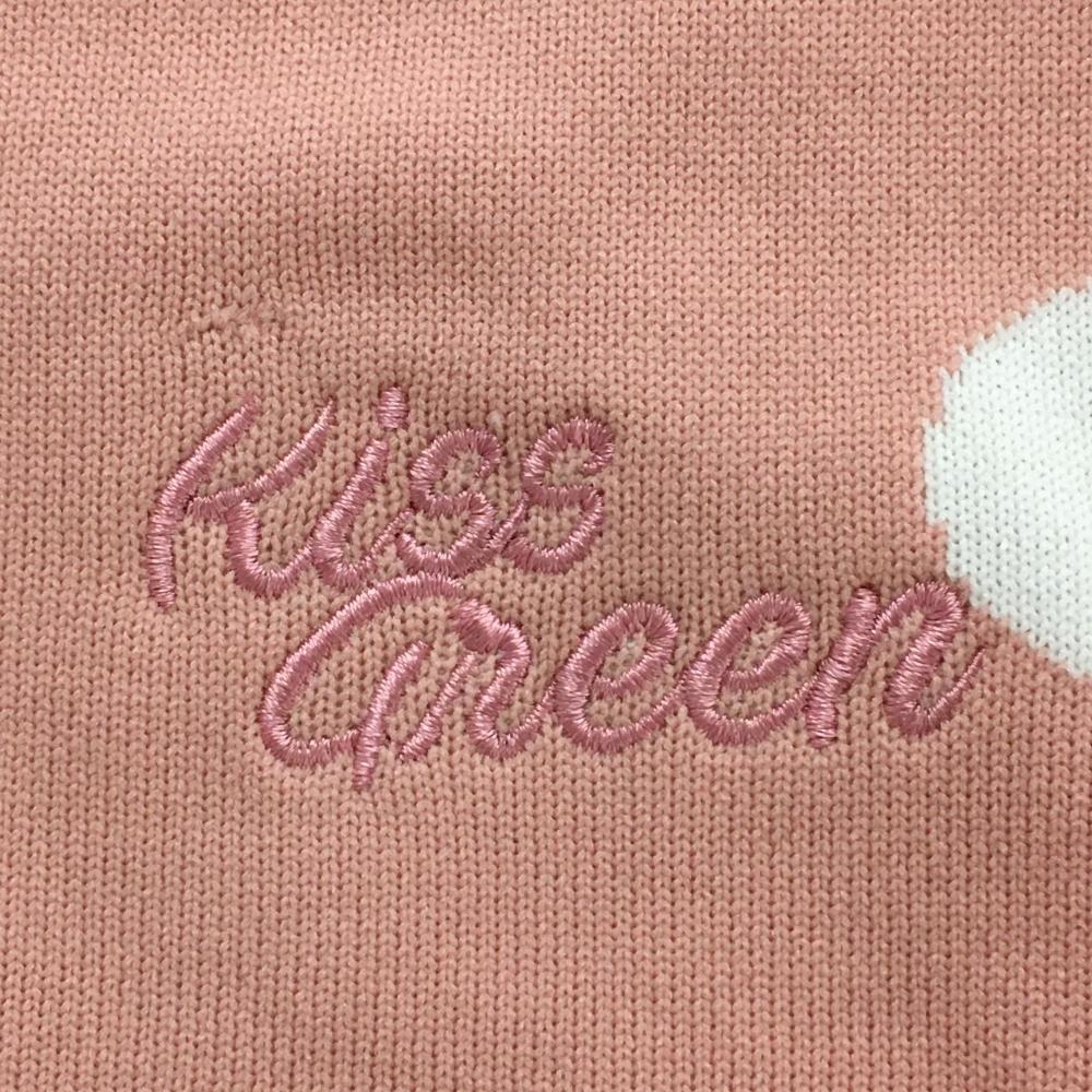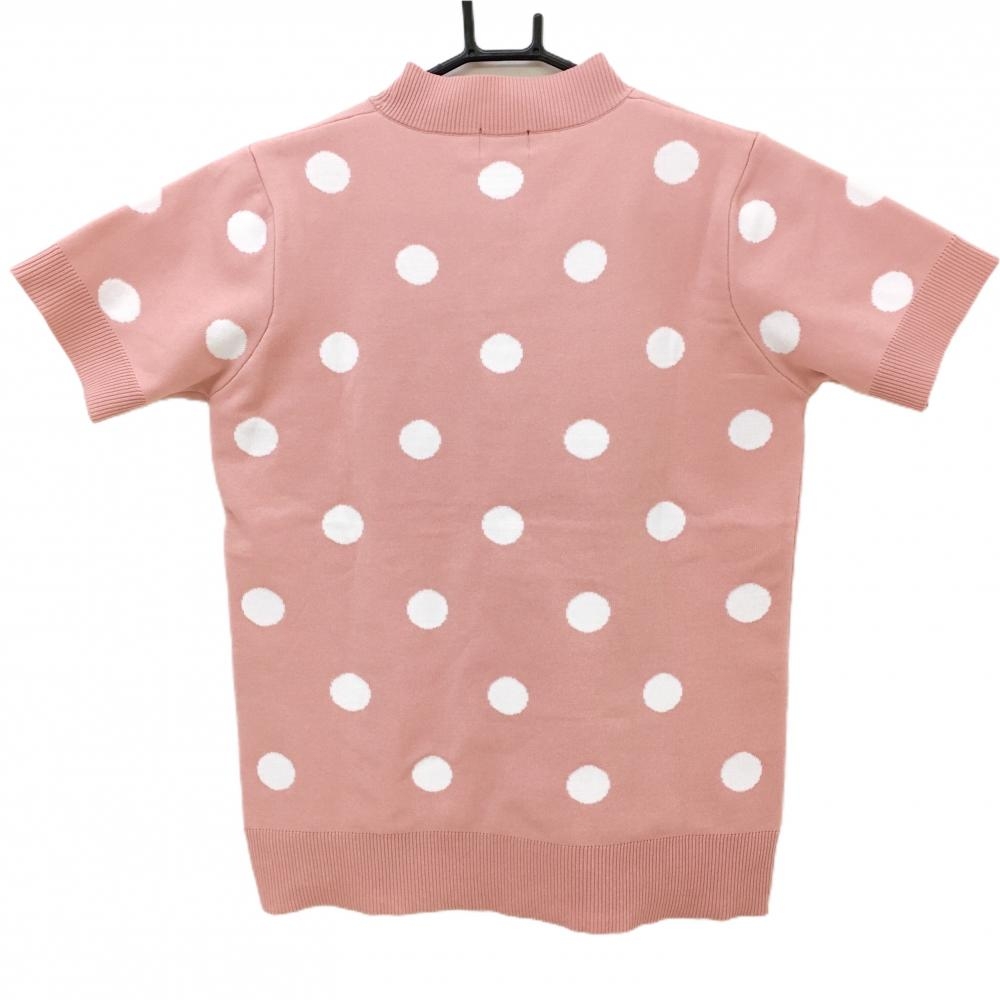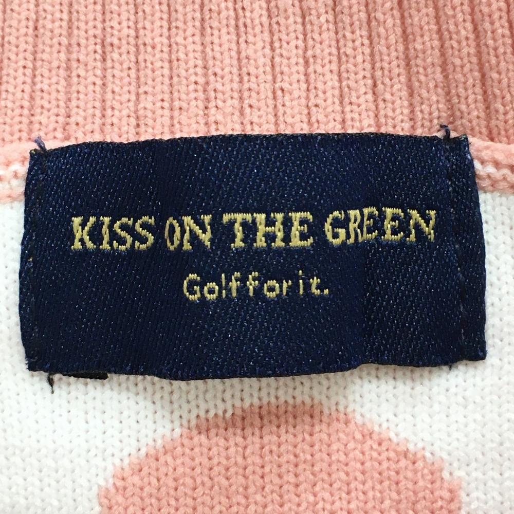 【美品】キスオンザグリーン 半袖ハイネックセーター ピンク×白 ドット柄 ニット レディース 3(L) ゴルフウェア kiss on the green
