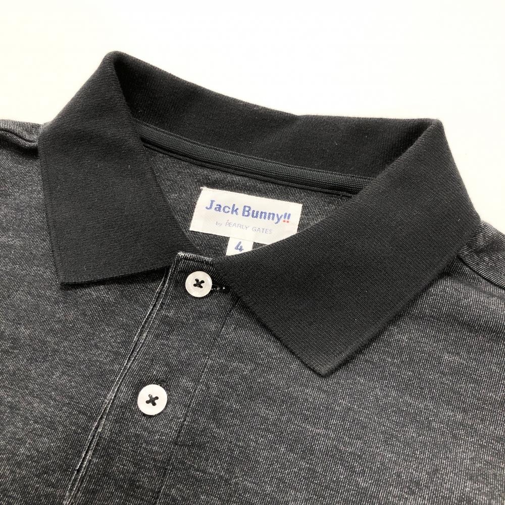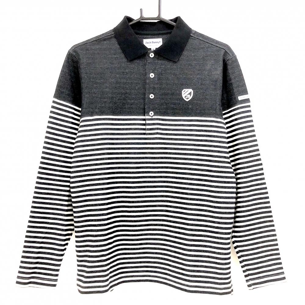 ジャックバニー 長袖ポロシャツ ダークグレー×白 パネルボーダー 胸ワッペン メンズ 4(M) ゴルフウェア Jack Bunny