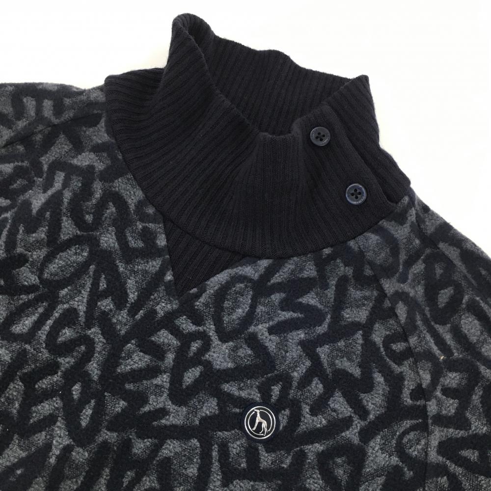 アダバット ハイネックセーター グレー×ネイビー 英字柄 胸元ロゴ レディース 42(XL) ゴルフウェア adabat