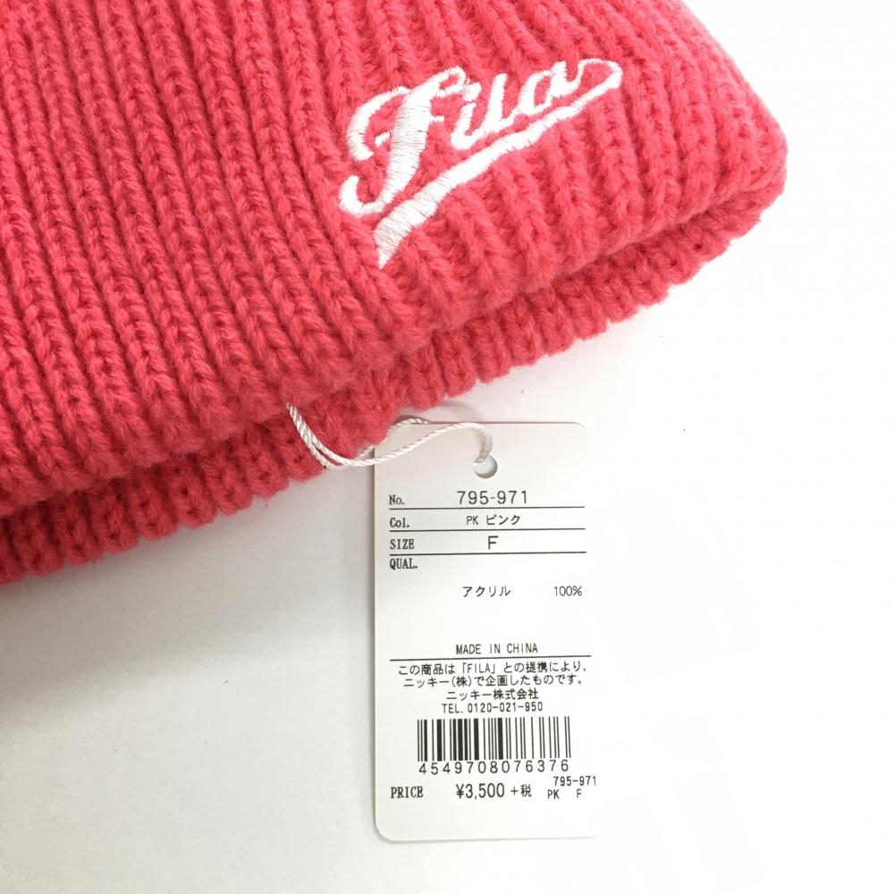 【新品】フィラゴルフ ニット帽 ピンク ロゴ刺しゅう F ゴルフウェア FILA GOLF