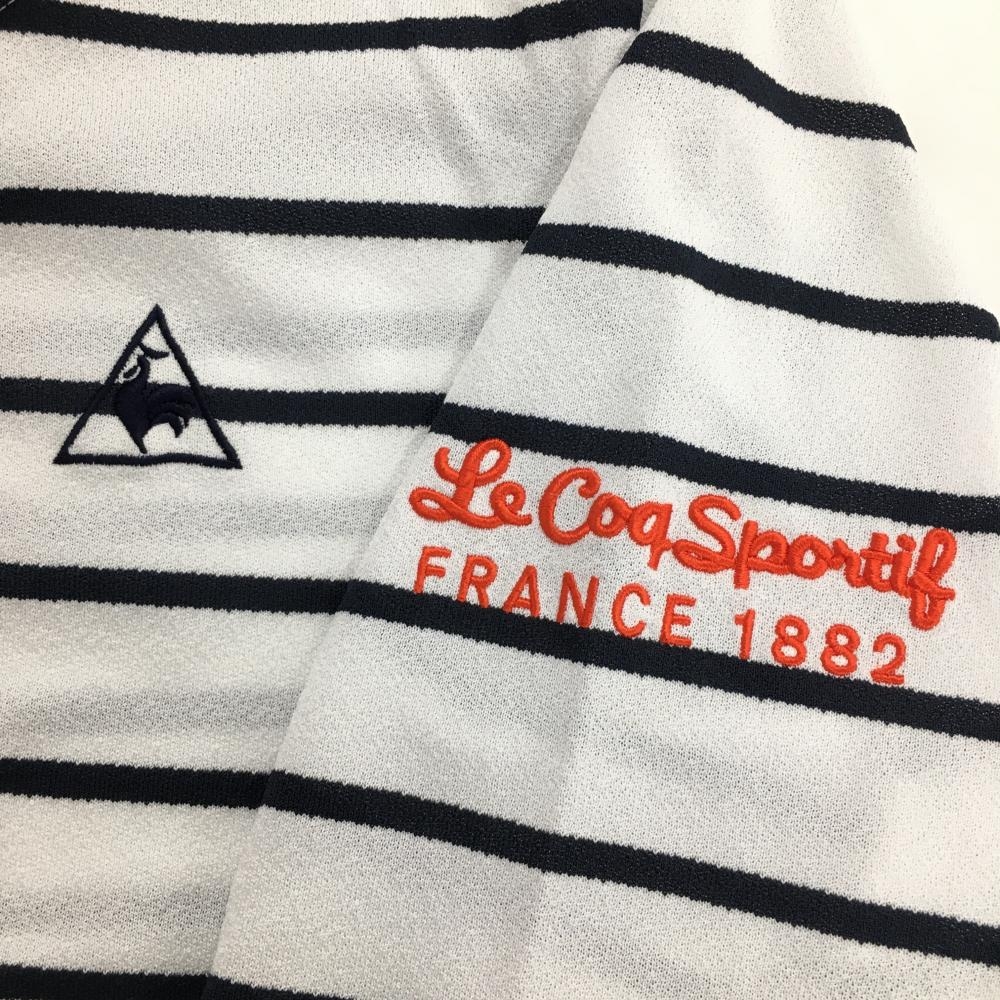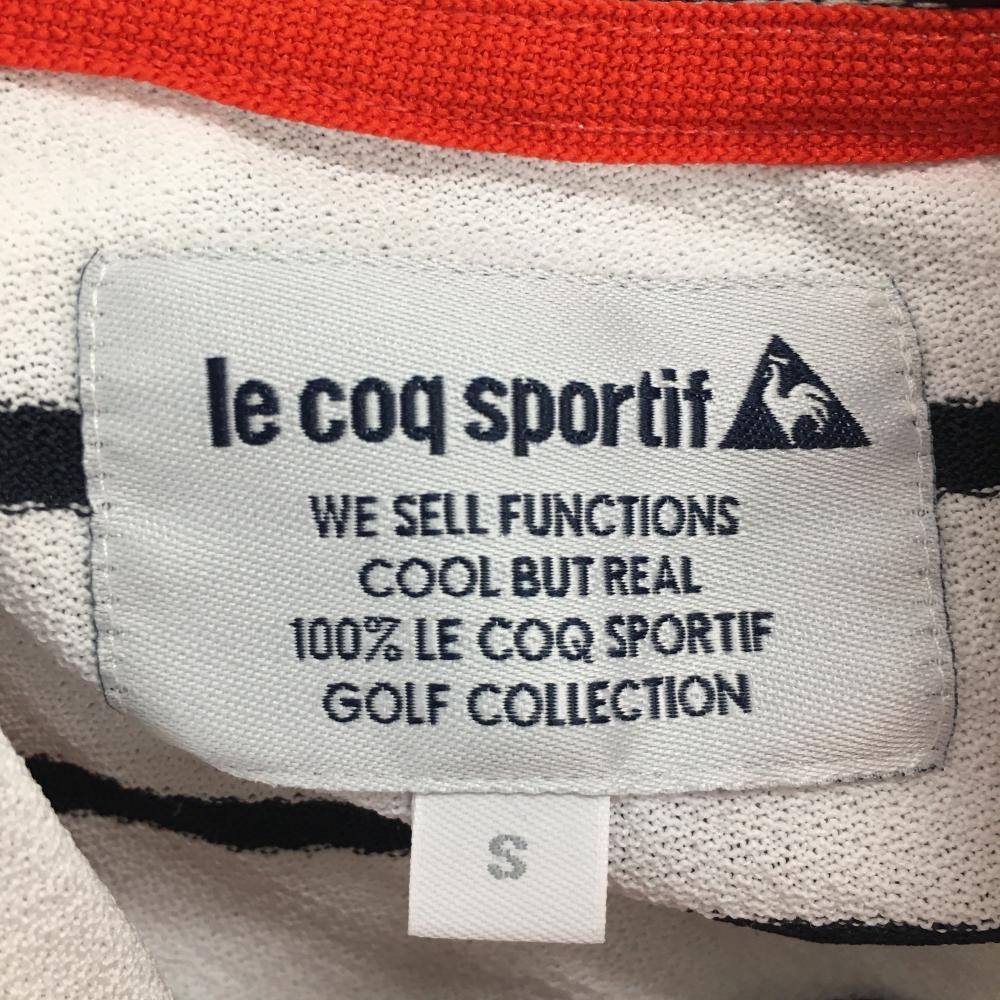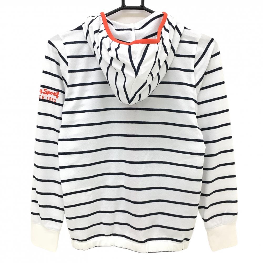 【美品】ルコック ジップパーカー 白×黒 ボーダー ロゴ刺しゅう 薄手 レディース S ゴルフウェア le coq sportif