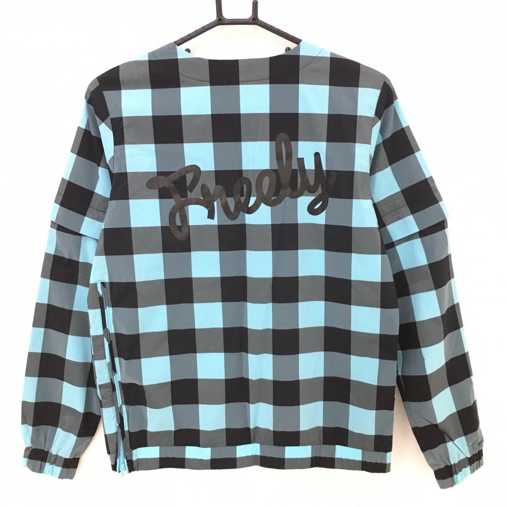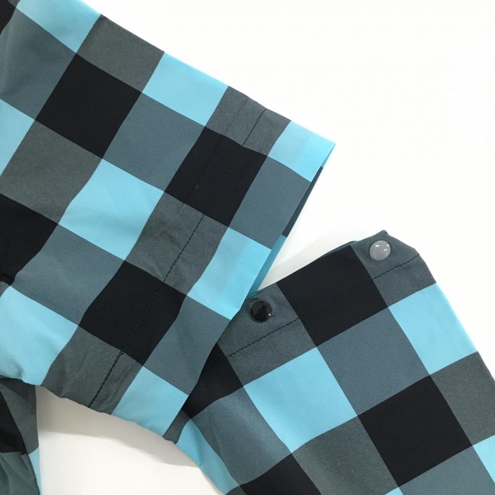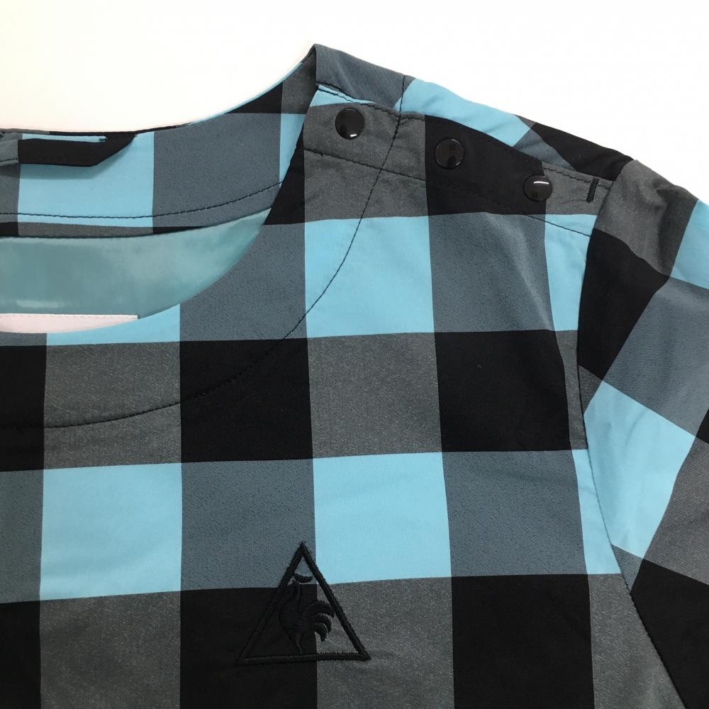 【美品】ルコック 2WAYスニード ライトブルー×黒 チェック 肩スナップボタン 袖着脱可 レディース S ゴルフウェア le coq sportif