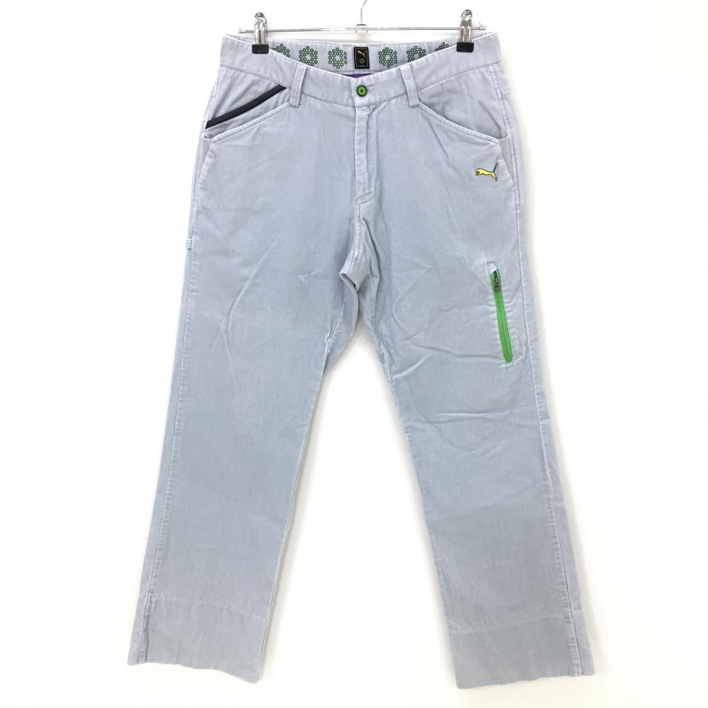 プーマ パンツ ライトグレー×ライトグリーン コーデュロイ ストレッチ メンズ 82 ゴルフウェア PUMA