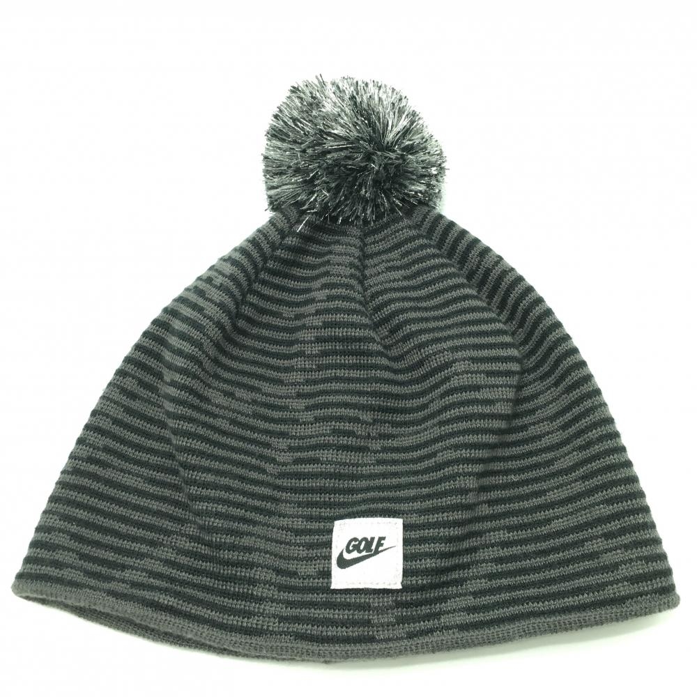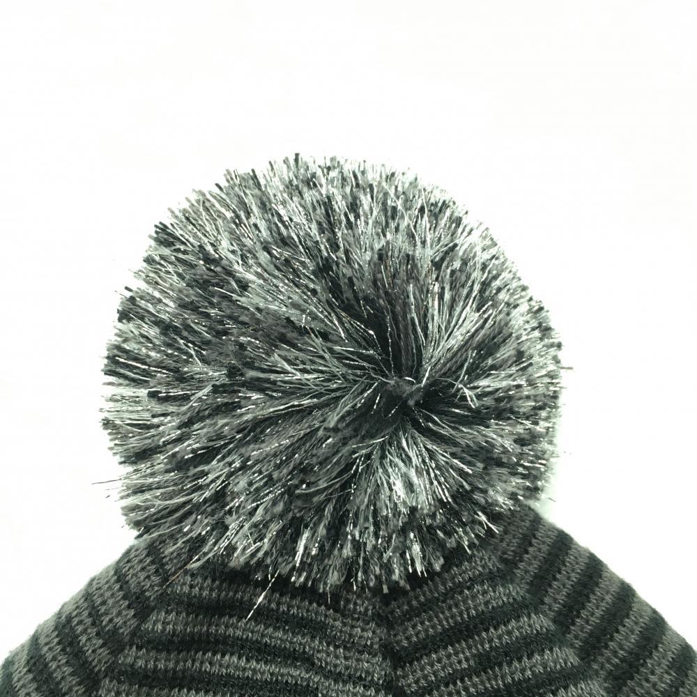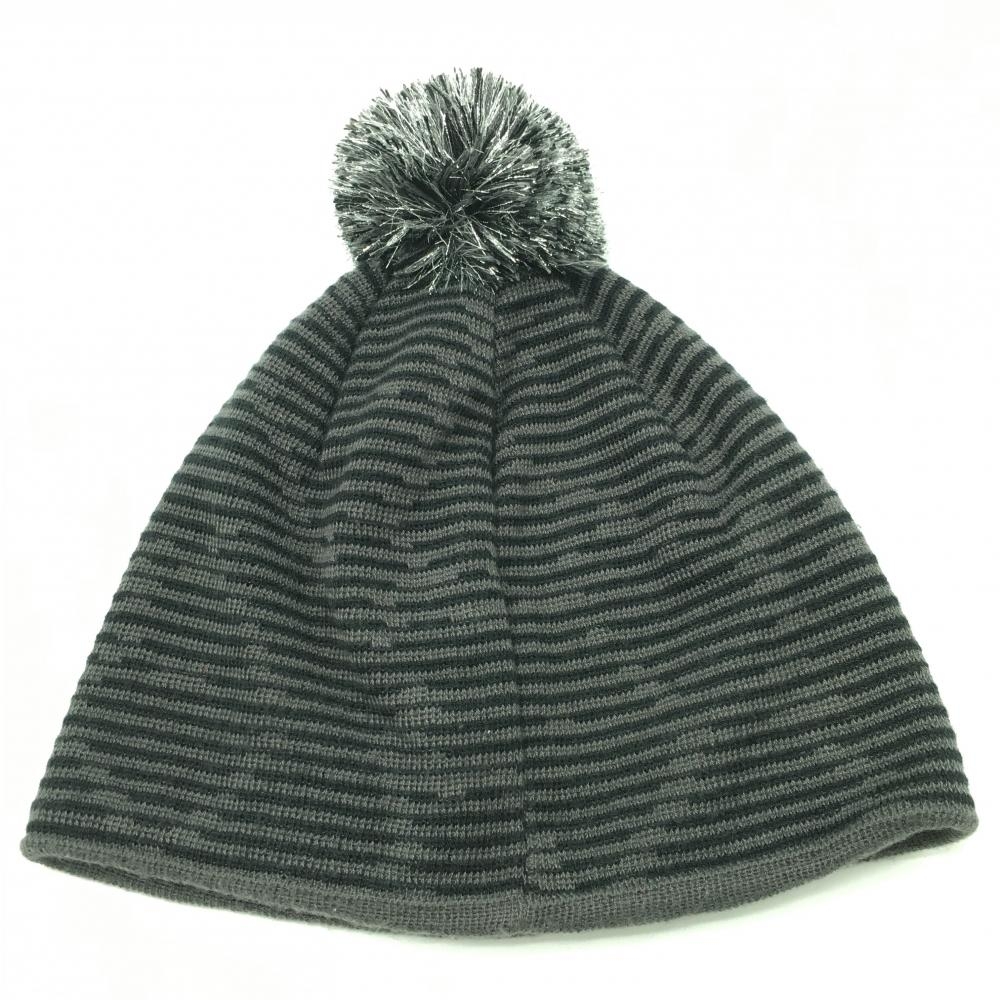 【超美品】アディダス ニット帽 グレー×黒 ボーダー調 裏地フリース ボンボン付 ONE SIZE FITS MOST ゴルフウェア adidas