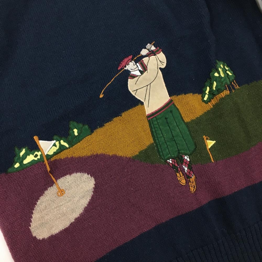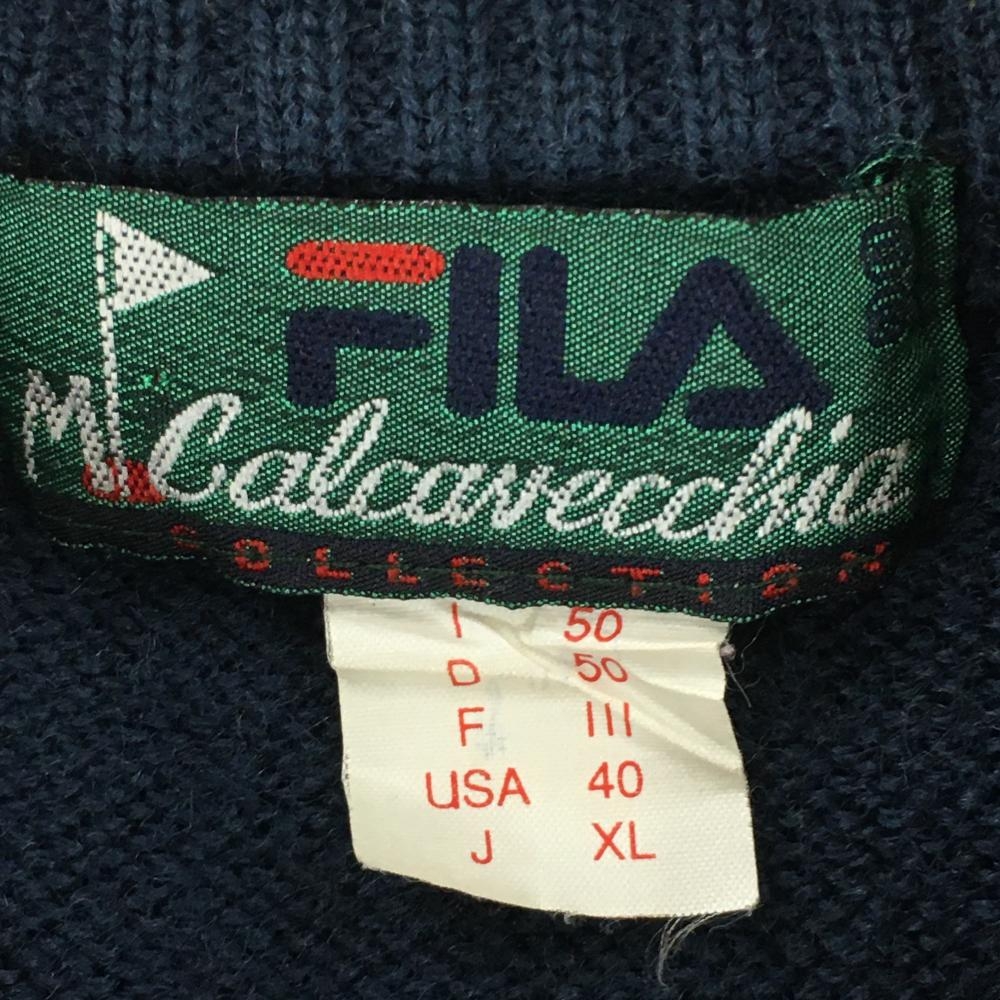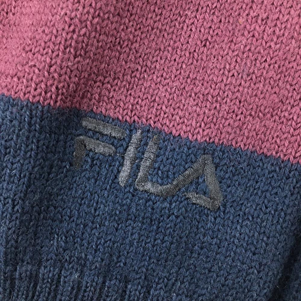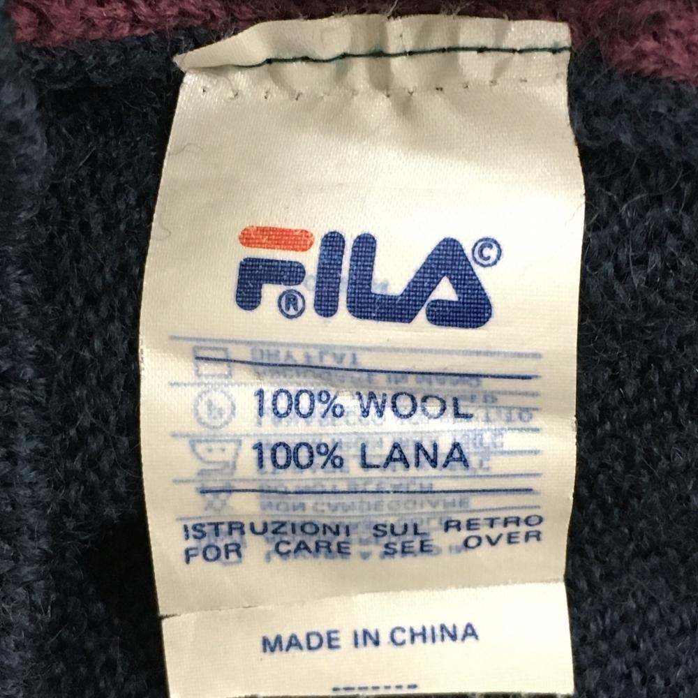 【美品】フィラゴルフ セーター ネイビー×ボルドー ゴルファー ウール100% ニット メンズ XL ゴルフウェア FILA GOLF