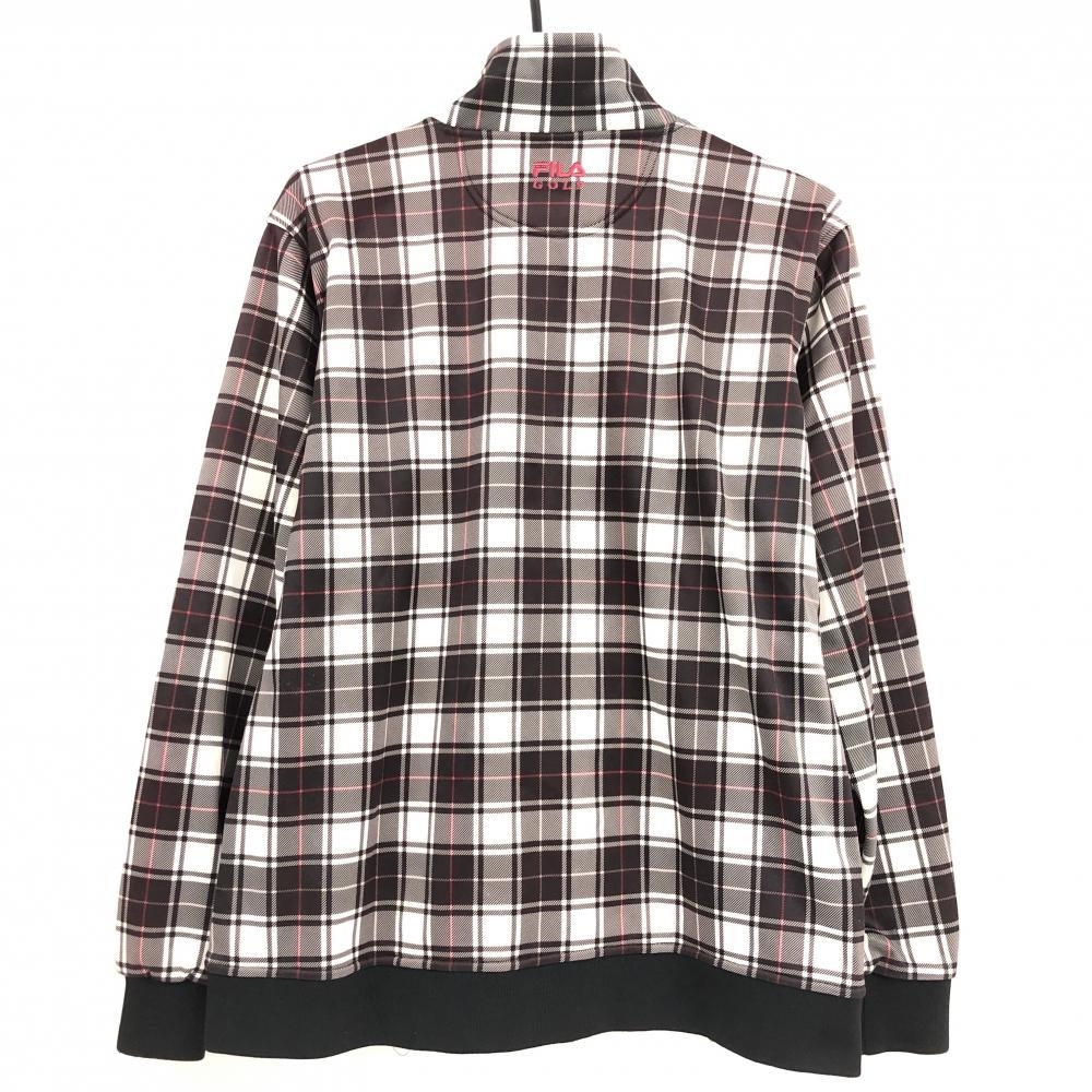 【超美品】フィラゴルフ ジャケットブルゾン ブラウン×白 チェック 裏起毛 刺しゅう メンズ L ゴルフウェア FILA GOLF