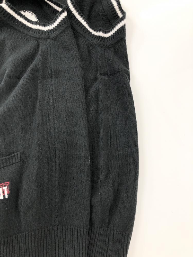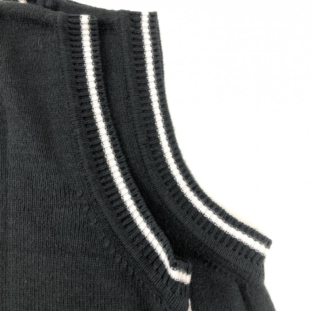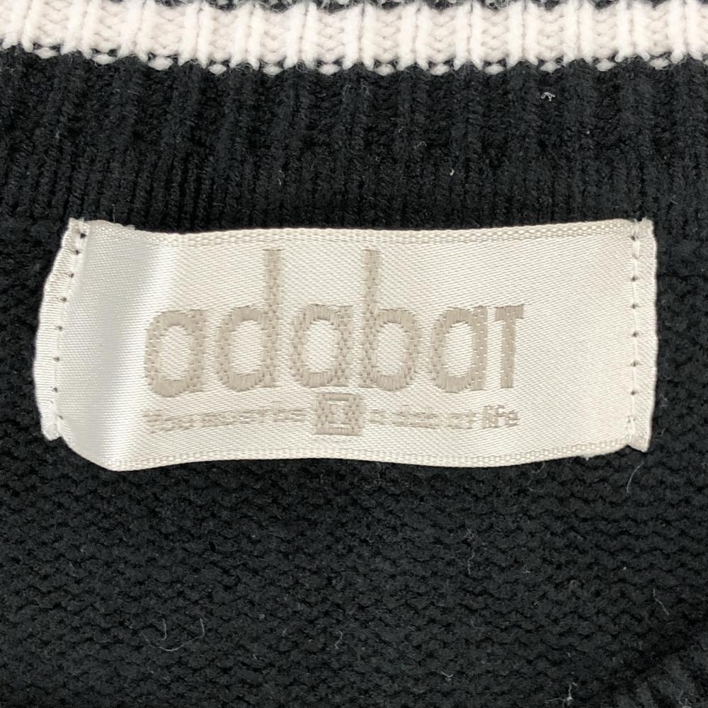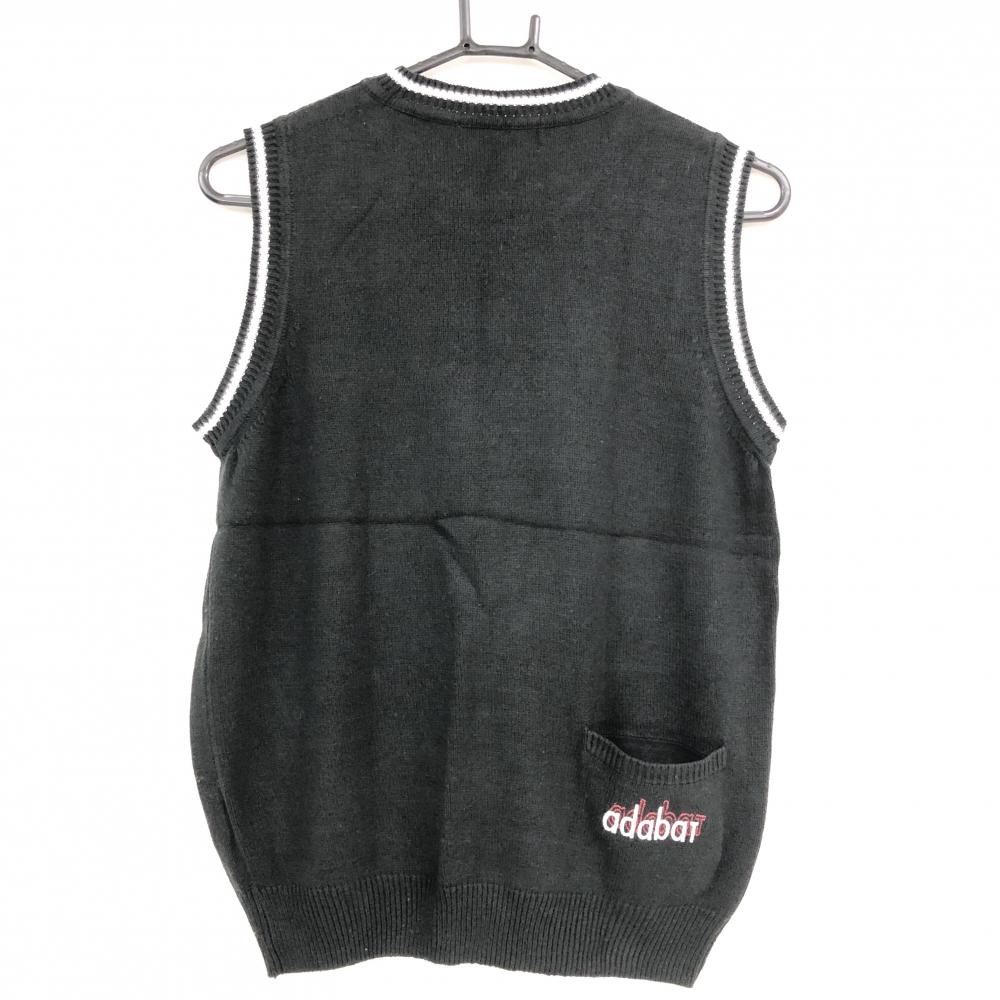 アダバット ニットベスト 黒×白 ネック・袖口ライン レディース I(M) ゴルフウェア adabat