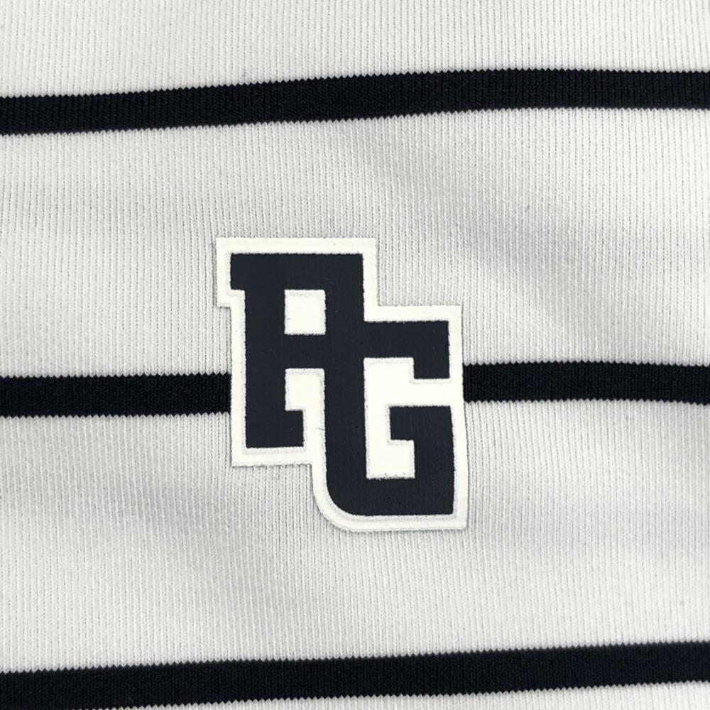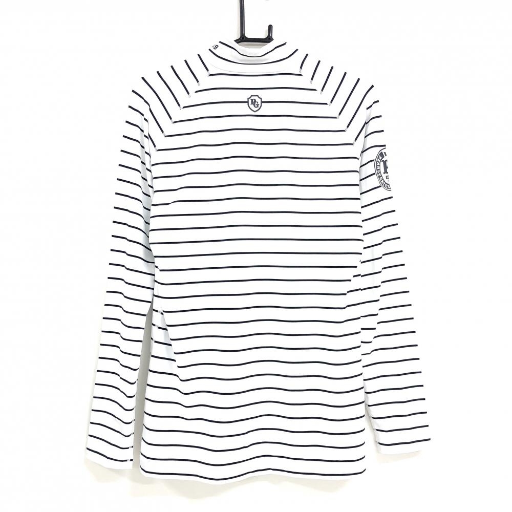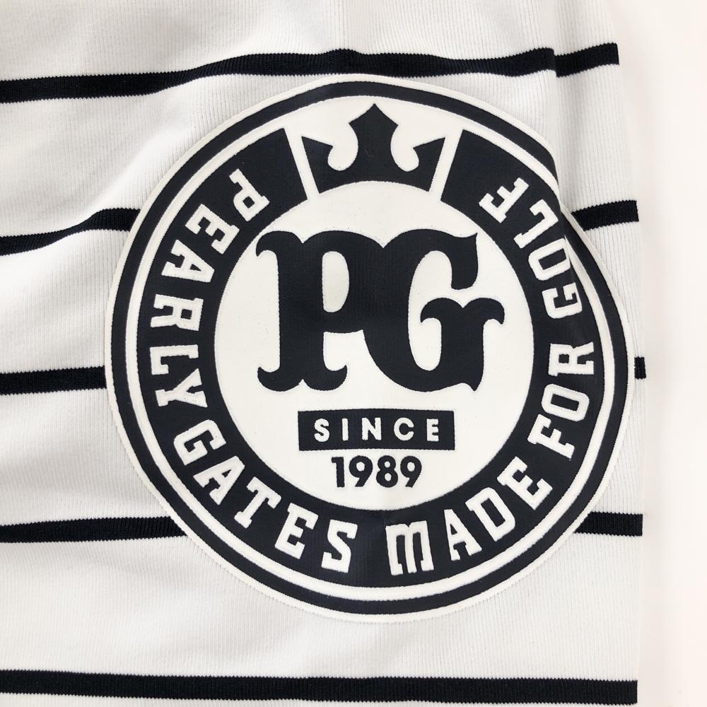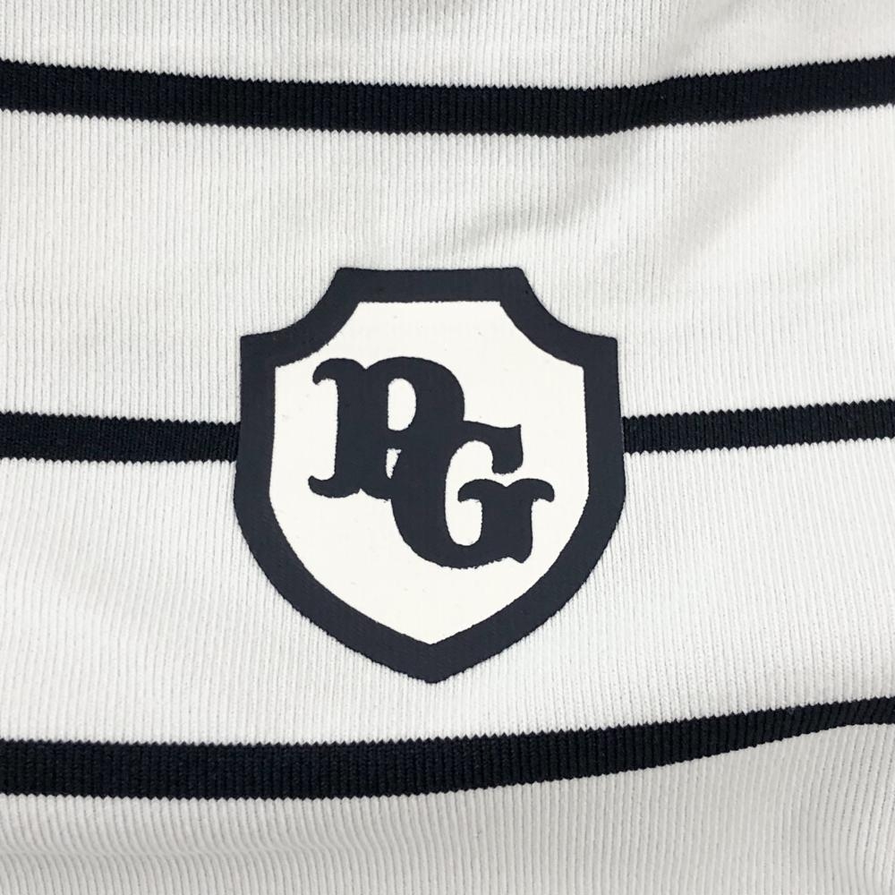 【超美品】パーリーゲイツ ハイネックインナーシャツ 白×黒 ボーダー 袖ロゴ メンズ 5(L) ゴルフウェア PEARLY GATES