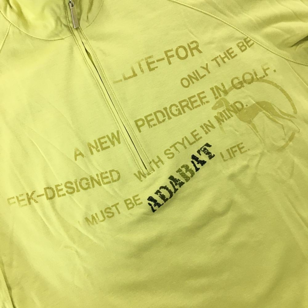【美品】アダバット 半端袖ハイネックシャツ イエローグリーン ハーフジップ 袖ファスナー レディース I(M) ゴルフウェア adabat