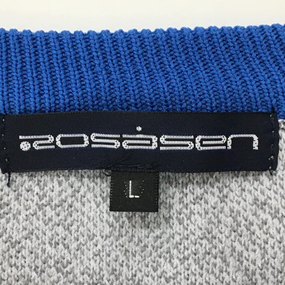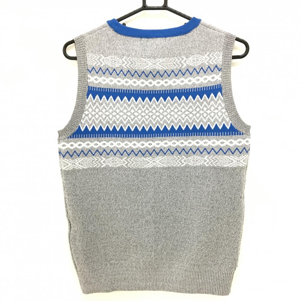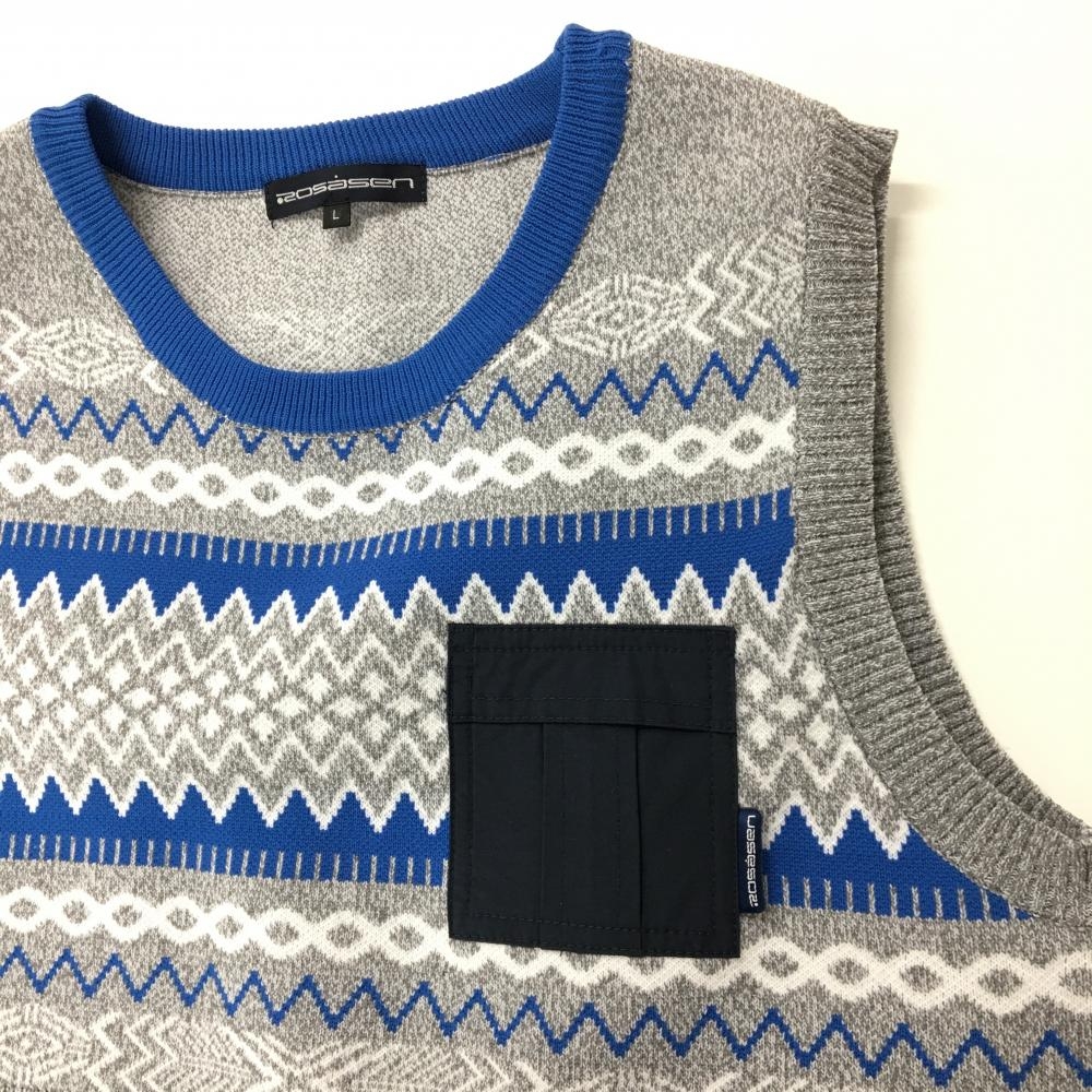 【超美品】ロサーセン ニットベスト グレー×ブルー 総柄 胸ポケット レディース L ゴルフウェア Rosasen