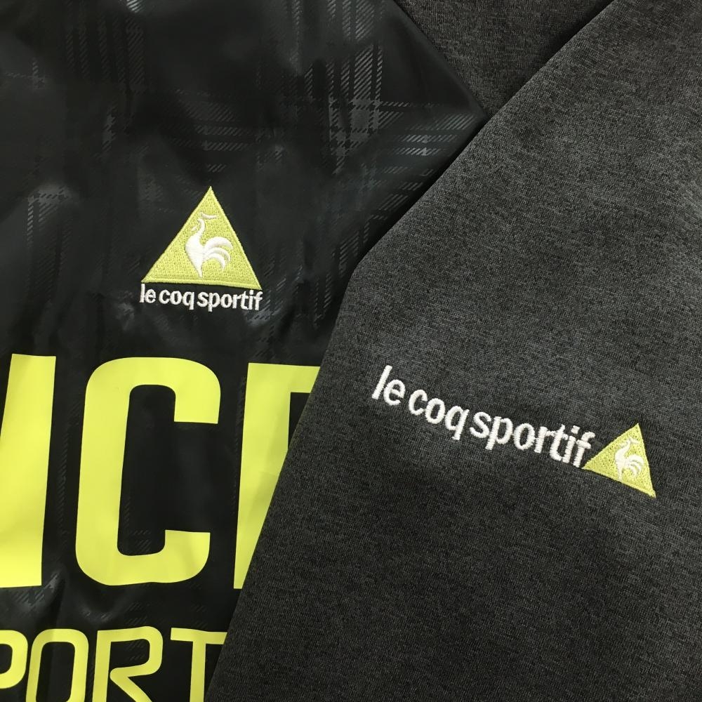 【超美品】ルコック ジップパーカー グレー×イエロー 歌微起毛 ビックロゴ 異素材切替 レディース M ゴルフウェア le coq sportif