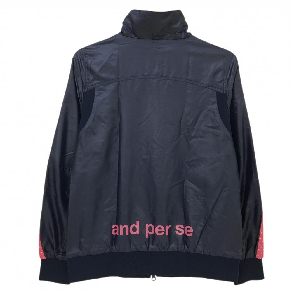 アンパスィ ジャケットブルゾン ネイビー×ピンク 蓄熱裏地 袖一部ドット レディース M ゴルフウェア and per se
