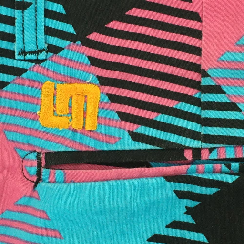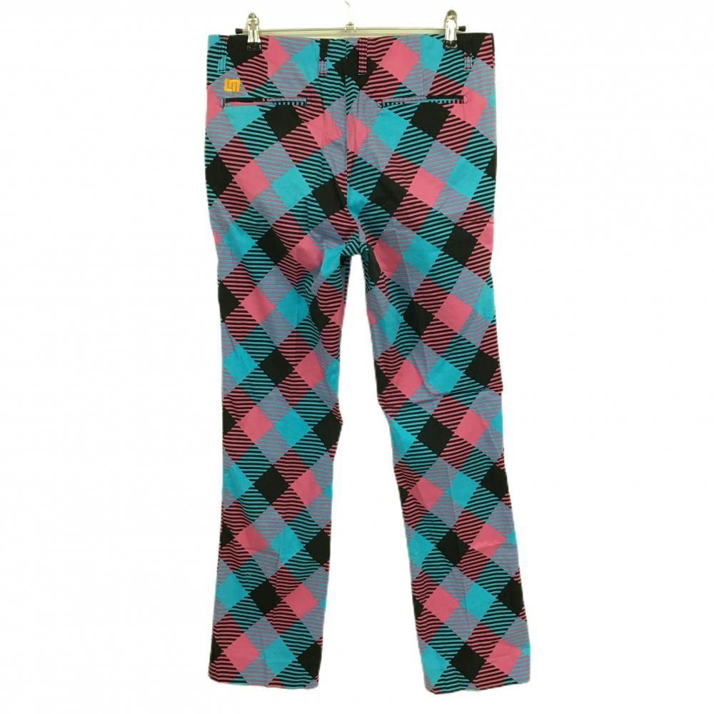 ラウドマウス パンツ ライトブルー×黒 斜め格子柄 バックロゴ メンズ 34×32L ゴルフウェア LOUDMOUTH