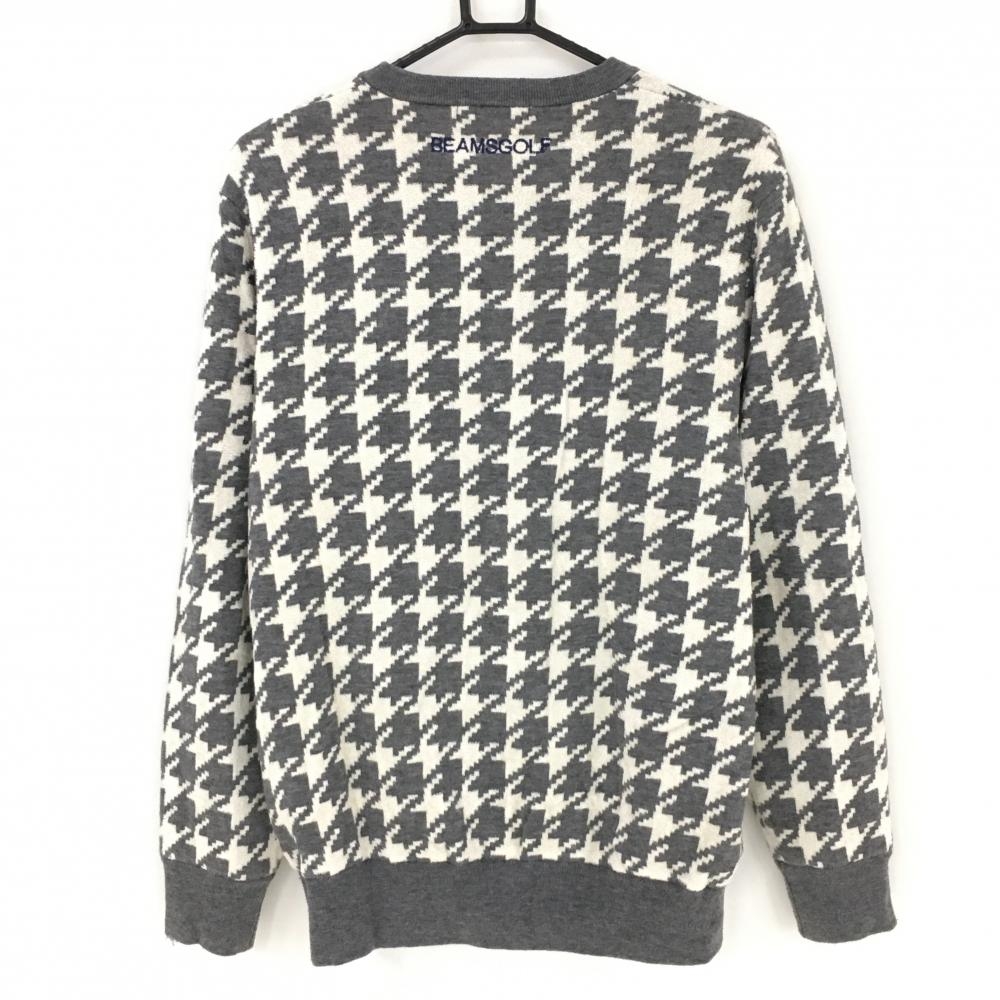 ビームスゴルフ セーター 白×グレー 千鳥格子 ニット Vネック 裏地付き メンズ L ゴルフウェア BEAMS GOLF