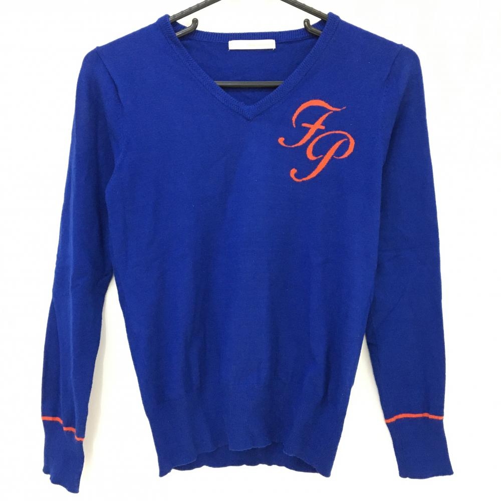フェアリーパウダー セーター ブルー ロゴオレンジ ウール混 レディース 2(M) ゴルフウェア FAIRY POWDER