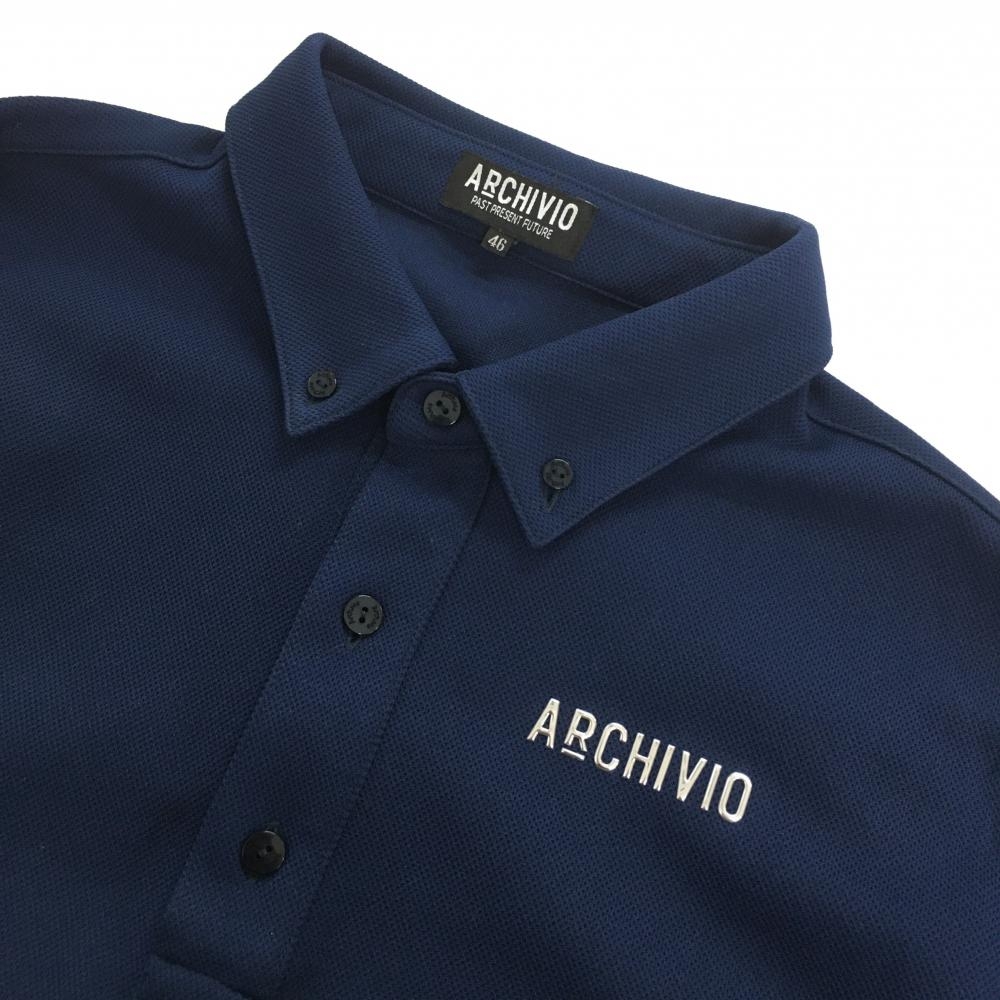 【超美品】アルチビオ 長袖ポロシャツ ネイビー ボタンダウン シルバーロゴ メンズ 46(M) ゴルフウェア 2022年モデル archivio
