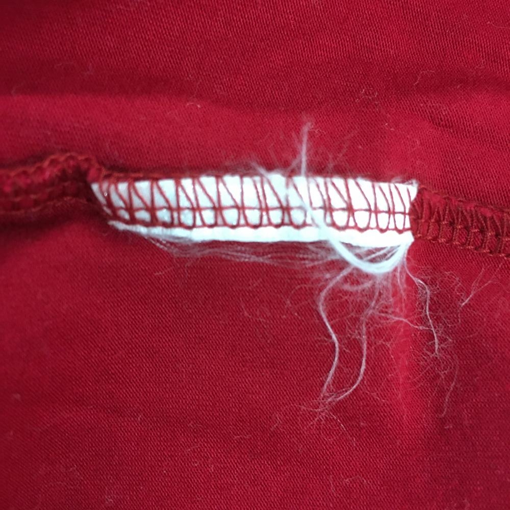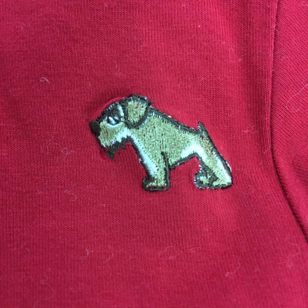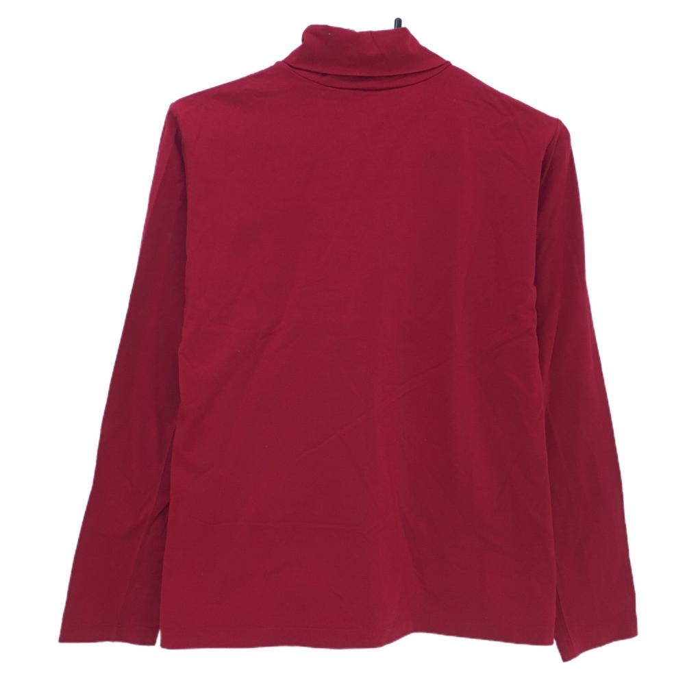 【美品】ヒールクリーク 長袖タートルネックシャツ レッド 犬刺しゅう 袖ロゴプリント レディース ゴルフウェア Heal Creek