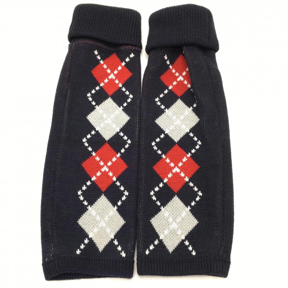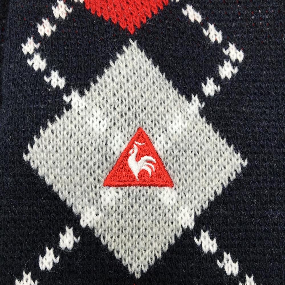 【超美品】ルコック ニットレッグウォーマー ネイビー×レッド アーガイル レディース F ゴルフウェア le coq sportif