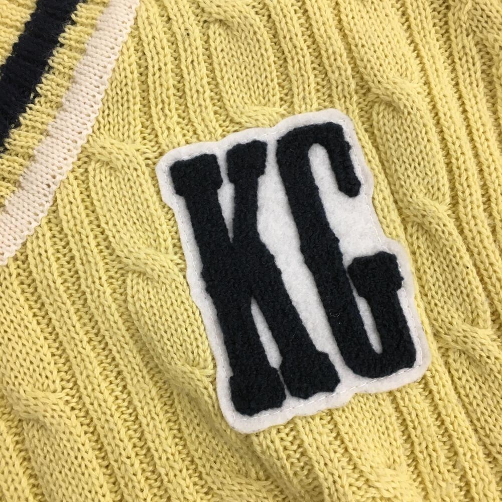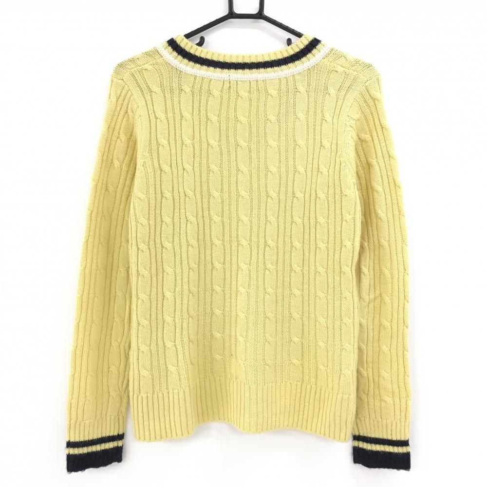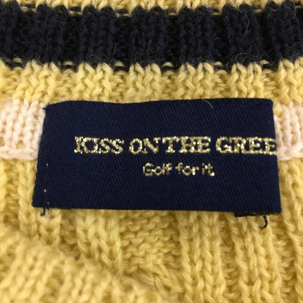 キスオンザグリーン セーター イエロー×ネイビー Vネック ケーブル編み ニット レディース 2(M) ゴルフウェア kiss on the green