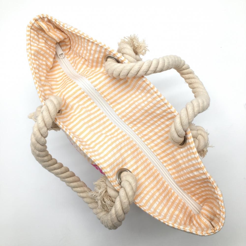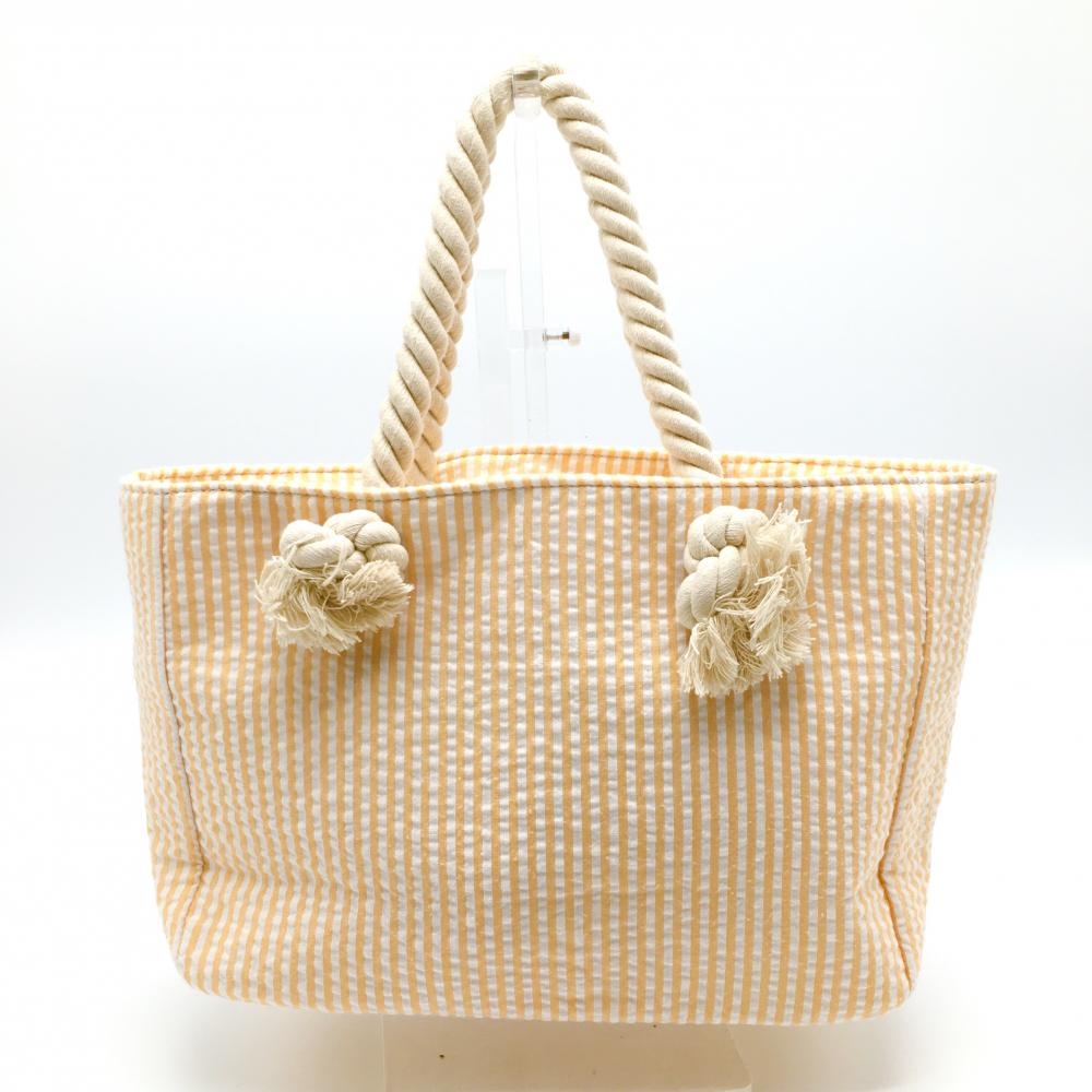 【美品】ビームスゴルフ カートバッグ オレンジ×白 ストライプ サッカー生地 内ポケット付ゴルフ BEAMS GOLF
