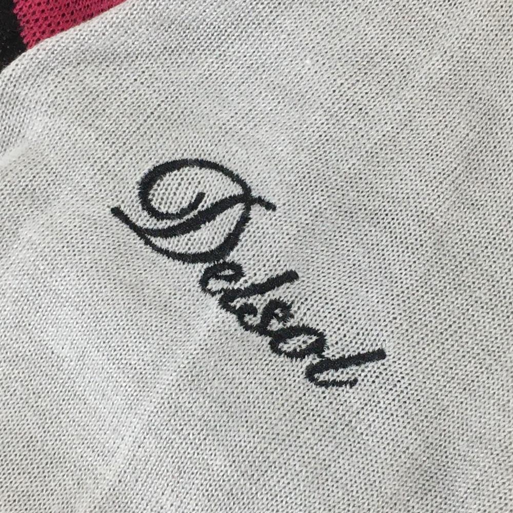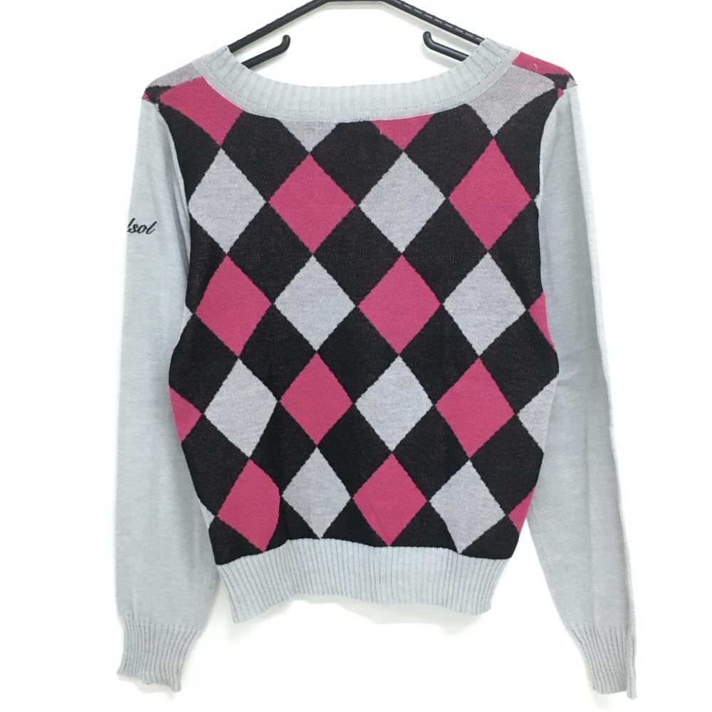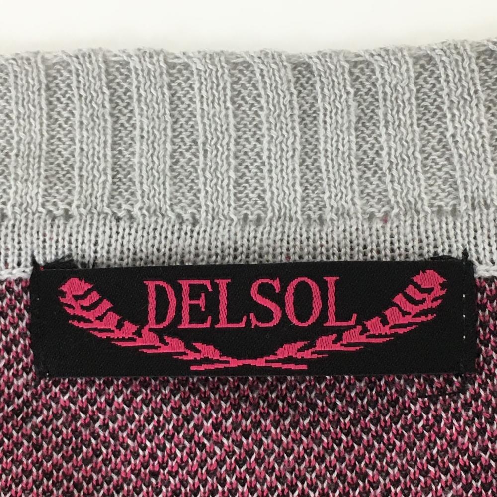 デルソル セーターグレー×ピンク ダイヤ柄 ニット Vネック 毛羽立ち少 レディース M ゴルフウェア DELSOL