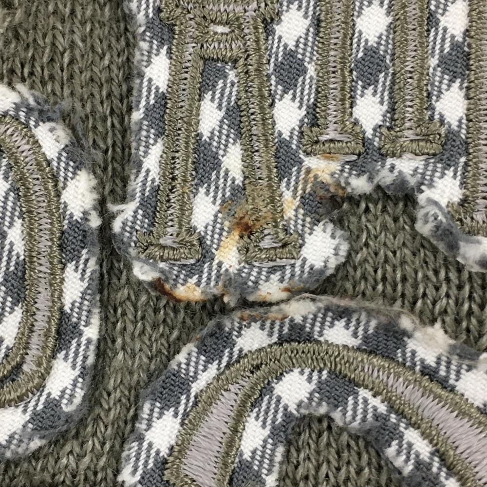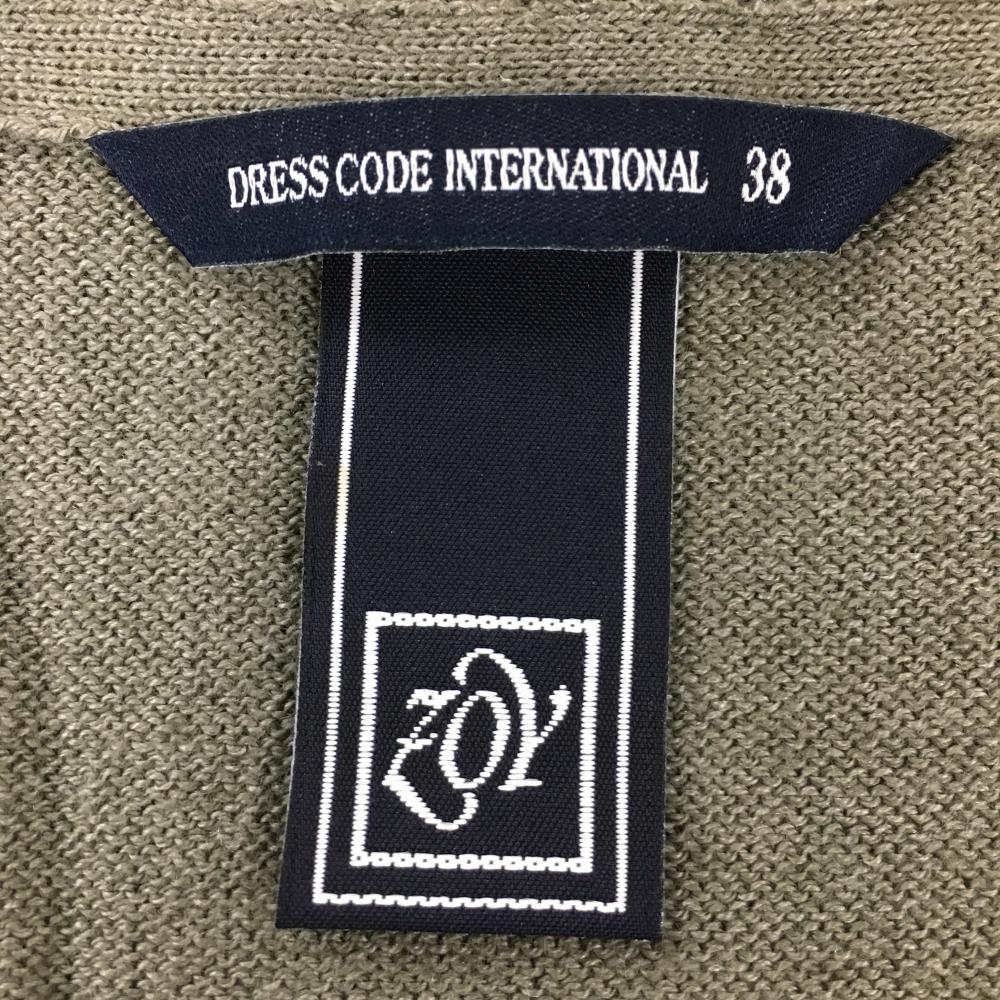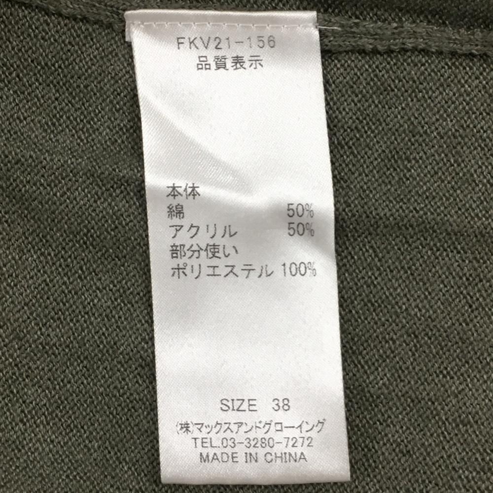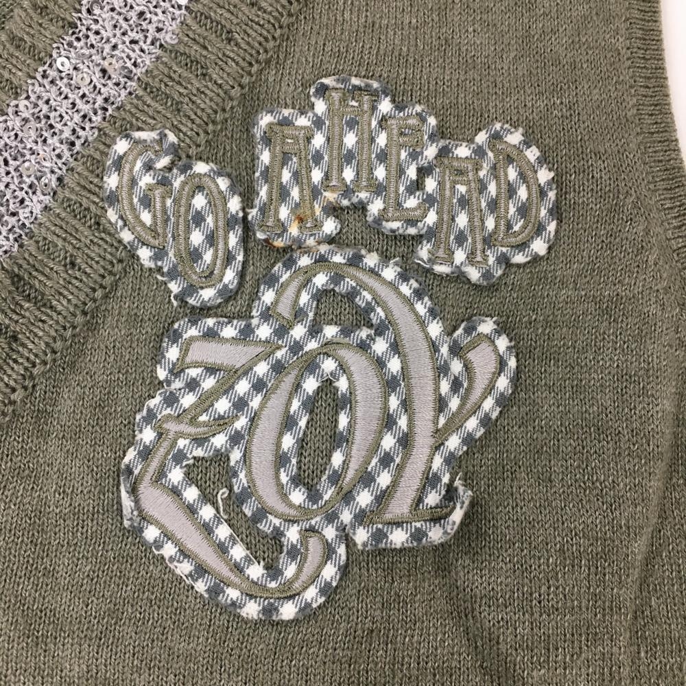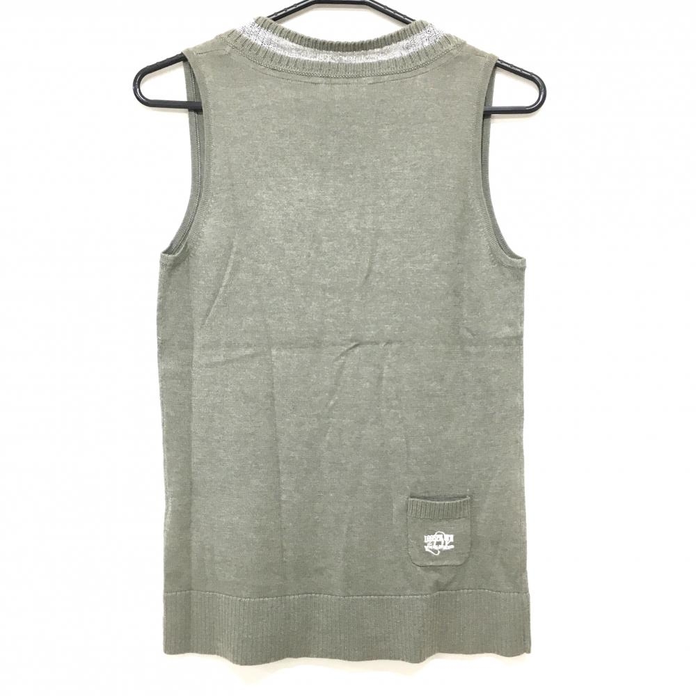【超美品】ゾーイ ニットベスト カーキ×グレー ロゴワッペン Vネック ネック透かし編み アクリル混 レディース 38(M) ゴルフウェア ZOY