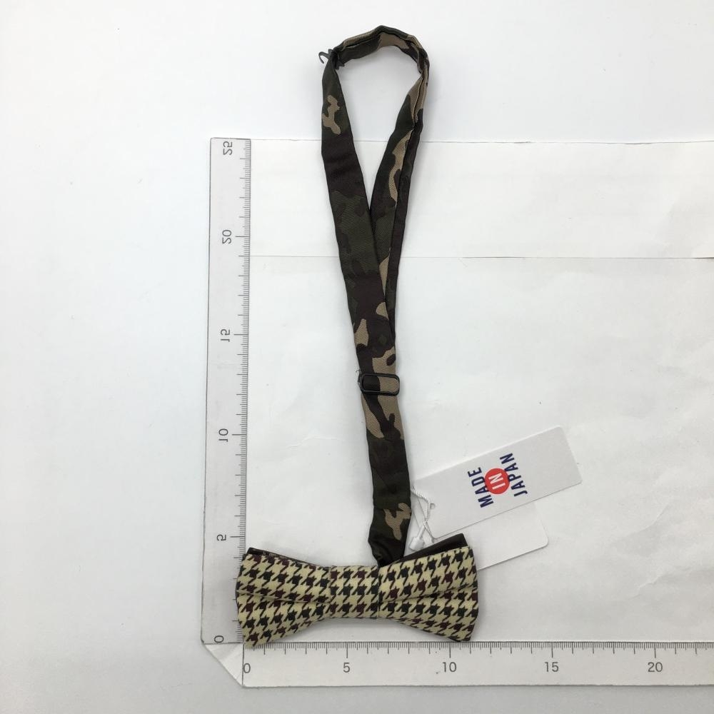 【新品】パーリーゲイツ 蝶ネクタイ ベージュ×カーキ 千鳥格子 カモフラ柄 迷彩ゴルフ PEARLY GATES