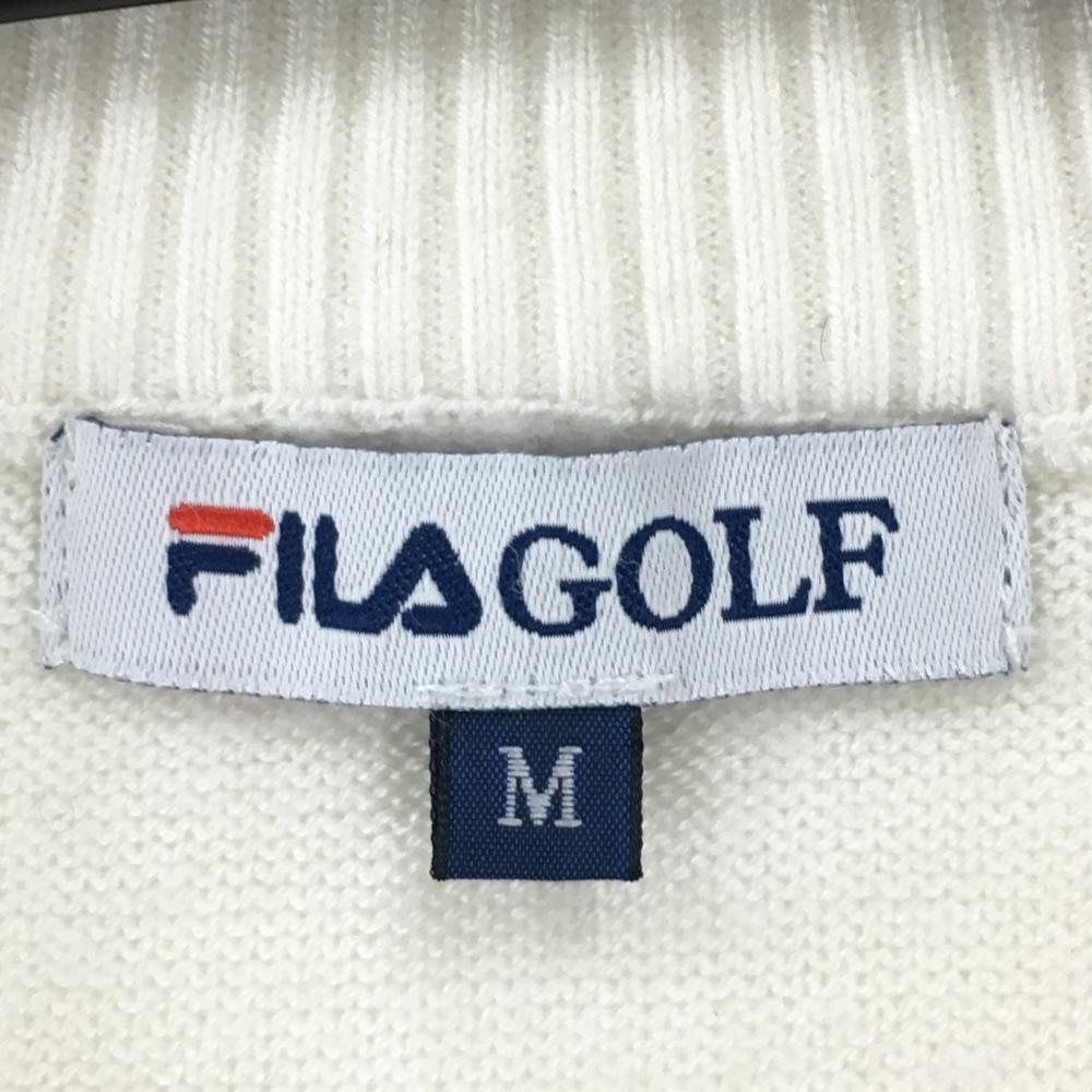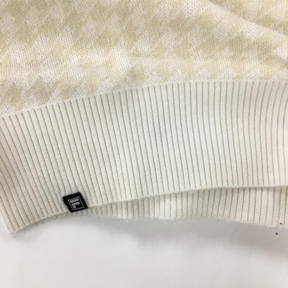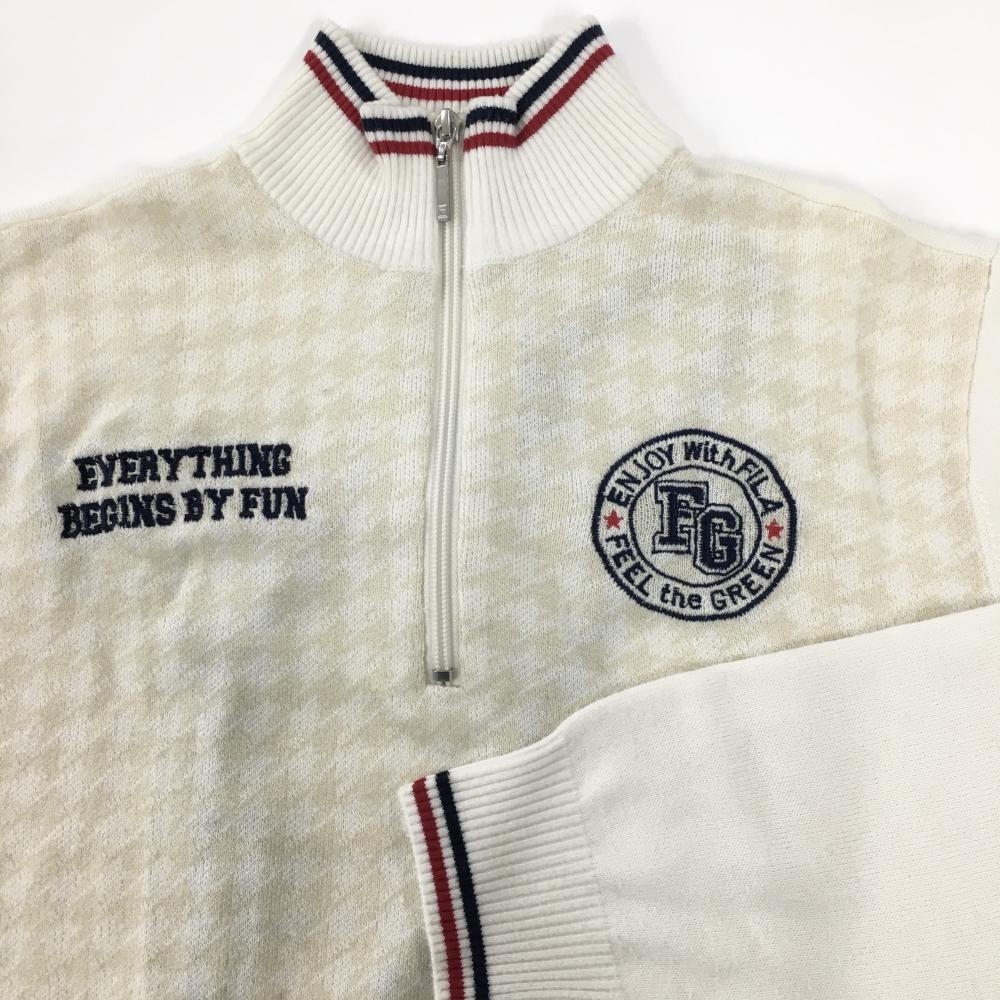 フィラゴルフ ハイネックセーター アイボリー×ライトベージュ ハーフジップ 前千鳥格子 ニット メンズ M ゴルフウェア FILA GOLF