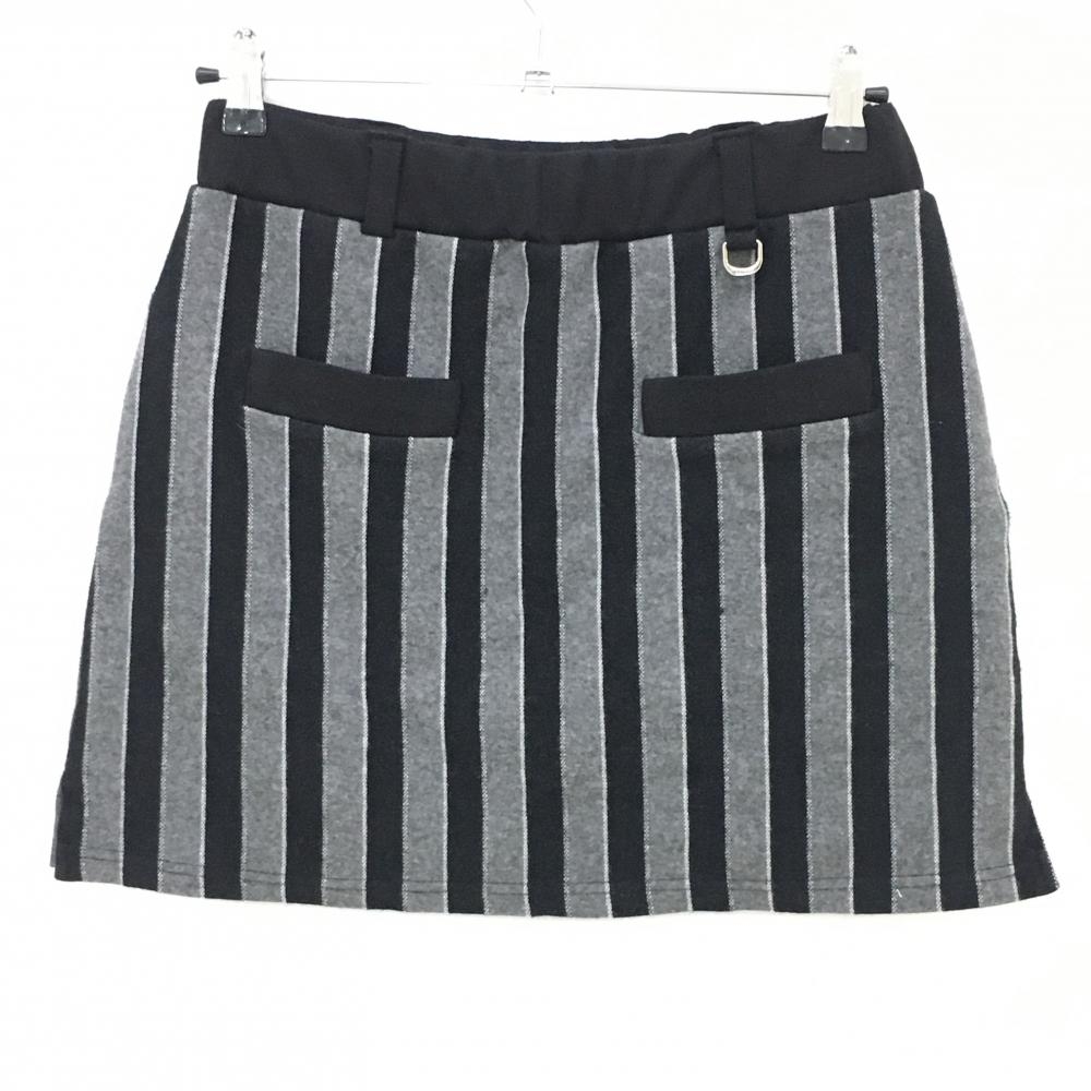 【美品】デルソル スカート 黒×グレー ストライプ 表微起毛 内側インナーパンツ レディース L ゴルフウェア DELSOL